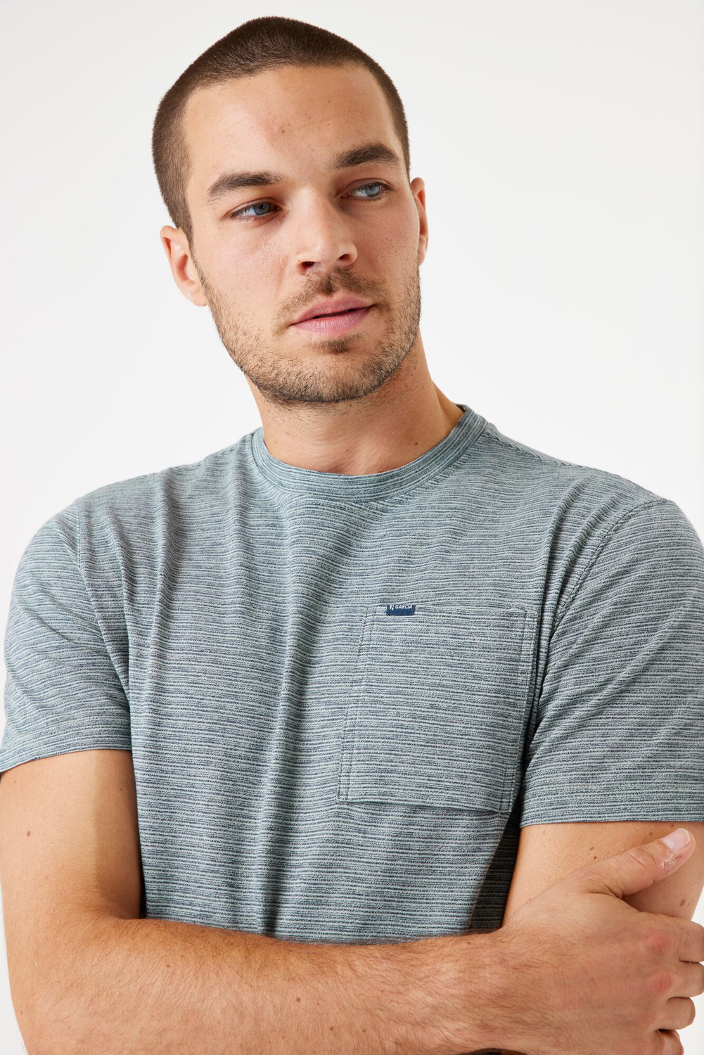 Dit casual T-shirt van Garcia in de kleur 6792 Light Sage is een veelzijdige keuze voor je zomergarderobe. Het T-shirt is gemaakt van 100% katoen, wat zorgt voor een zacht en ademend gevoel. De regular fit pasvorm en de korte mouwen maken het een comfortabele keuze voor dagelijks gebruik. De subtiele streeppatroon en de ronde hals geven het een tijdloze uitstraling, terwijl het borstzakje net dat beetje extra karakter toevoegt aan het geheel. Dankzij het veelzijdige ontwerp laat dit Garcia T-shirt zich eenvoudig combineren met zowel jeans als shorts. Perfect voor een dagje uit in de stad of een ontspannen middag in het park. De normale lengte zorgt ervoor dat het shirt precies goed valt, terwijl de lichte tint het een frisse en zomerse look geeft. Of je nu een casual dag op het strand plant of een barbecue met vrienden, dit T-shirt vormt de ideale basis voor je outfit.