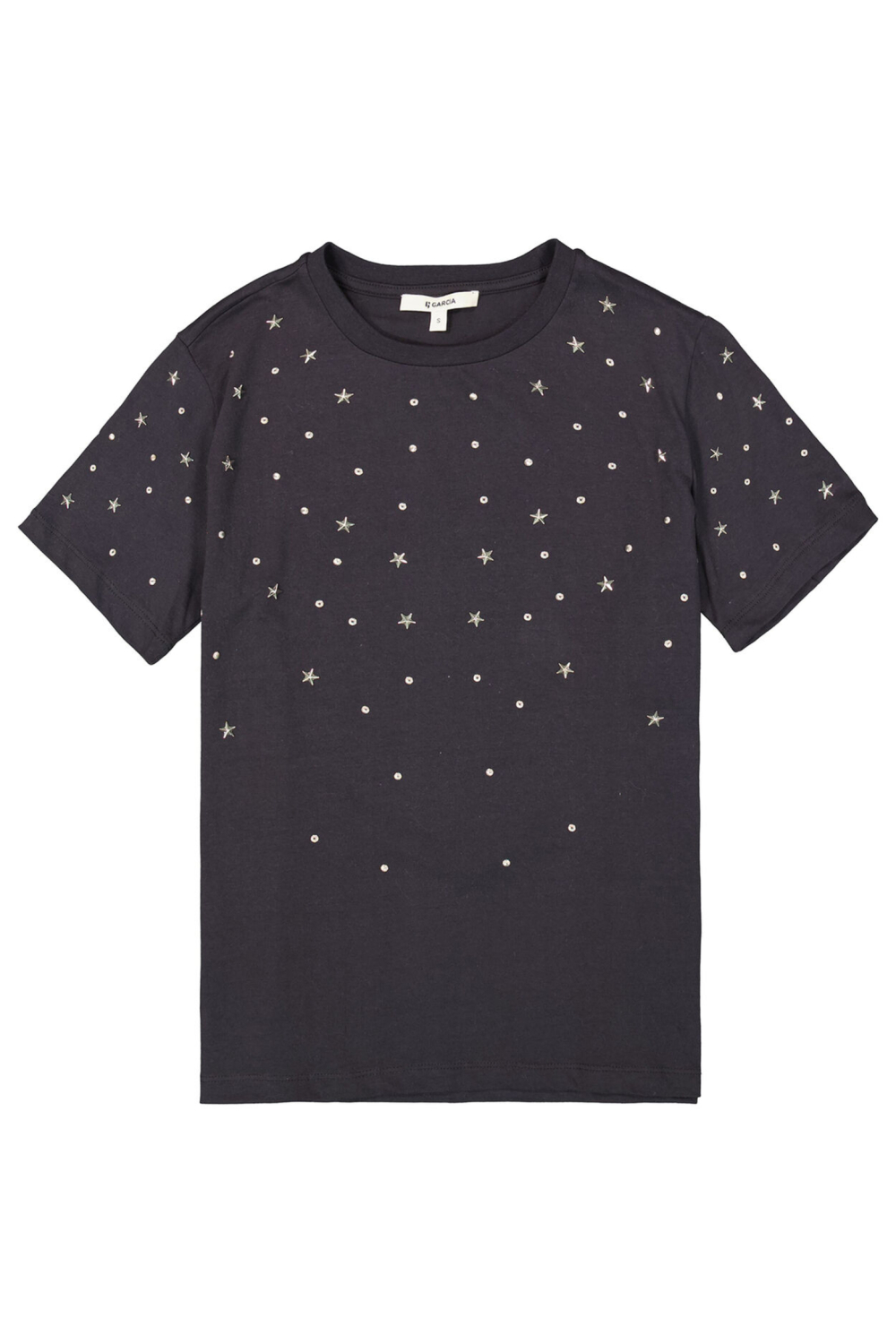 Dit dames T-shirt van Garcia is een perfecte keuze voor jouw herfstgarderobe. Het heeft een klassieke ronde hals en een casual stijl die makkelijk te combineren is met verschillende outfits. Gemaakt van 100% katoen, biedt dit T-shirt comfort en ademend vermogen, ideaal voor dagelijkse activiteiten. Met zijn regular fit zorgt het voor een relaxte en toch stijlvolle uitstraling, en de korte mouwen maken het geschikt voor zowel binnen als buiten. De antracietkleurige stof van het T-shirt is verfraaid met opvallende studs in de vorm van sterren, die een speelse en modieuze touch geven aan het geheel. Dit maakt het T-shirt niet alleen bijzonder geschikt voor casual dagen, maar ook voor gelegenheden waar je net dat beetje extra flair wilt toevoegen. Combineer het met een jeans voor een ontspannen look of met een rok voor een iets gekledere stijl. Dit veelzijdige stuk mag niet ontbreken in jouw collectie.