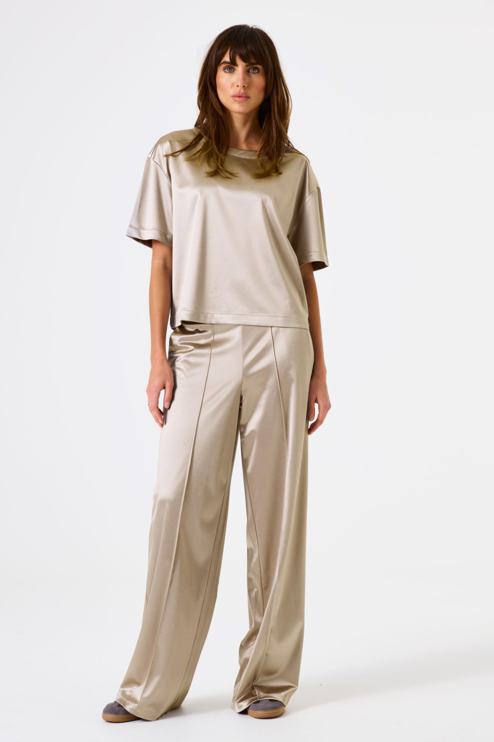 Dit casual T-shirt van Garcia combineert stijl en comfort op een geraffineerde manier. De regular fit zorgt voor een ontspannen uitstraling, terwijl de glanzende gouden kleur de nodige elegantie toevoegt. Met een ronde hals en korte mouwen is dit T-shirt zowel veelzijdig als comfortabel in de winter. Gemaakt van een hoogwaardige mix van 93% polyester en 7% elastaan, biedt het een soepele pasvorm die je de hele dag door graag draagt. Dit T-shirt is ideaal voor diverse gelegenheden. Of je nu een dagje thuis bent of met vriendinnen gaat lunchen, het is gemakkelijk te combineren met zowel een spijkerbroek als een nette rok. De normale lengte houdt het geheel in balans, waardoor je het ook onder een jack kunt dragen zonder dat het klonterig oogt. Voeg dit veelzijdige kledingstuk toe aan je verzameling en geniet van een casual maar chique look die nooit uit de mode raakt.