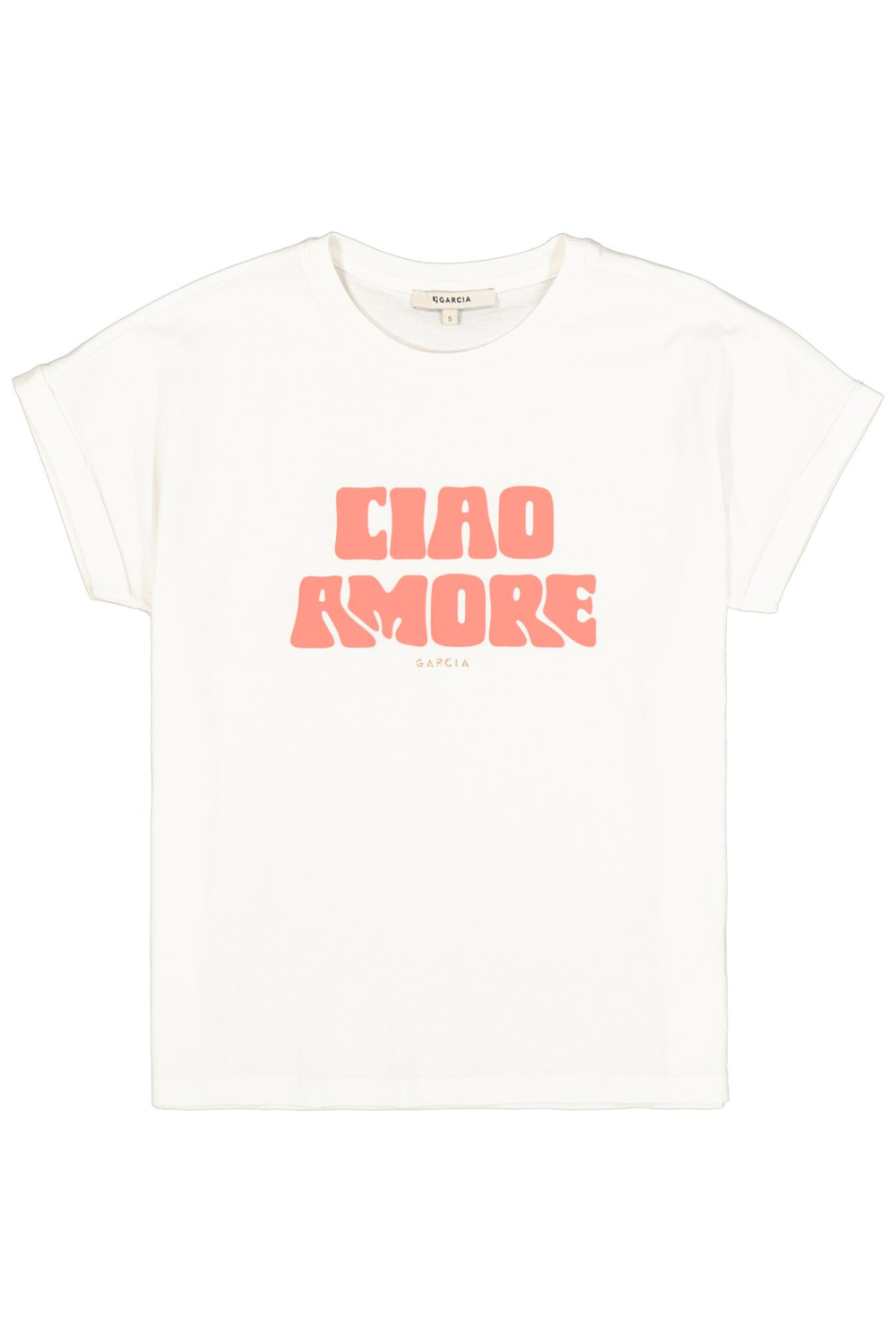Dit casual dames T-shirt van Garcia is een veelzijdige aanvulling op je zomergarderobe. Het heeft een relaxte regular fit en is gemaakt van 100% katoen waardoor het zacht aanvoelt op de huid. De frisse off-white kleur in combinatie met de speelse “Ciao Amore” tekst op de voorzijde geeft een moderne en trendy uitstraling. De ronde hals en korte mouwen maken het T-shirt ideaal voor warme dagen en diverse activiteiten. Het Garcia T-shirt met tekst is perfect voor een ontspannen dagje uit of een casual samenzijn. Combineer het met een comfortabele broek of een jeans voor een ongedwongen outfit die toch stijlvol is. Deze top past zich gemakkelijk aan verschillende situaties aan, van een informele lunch tot een relaxte zomeravond in de stad. Door het tijdloze design blijft dit T-shirt altijd een goede keuze in je kledingkast.