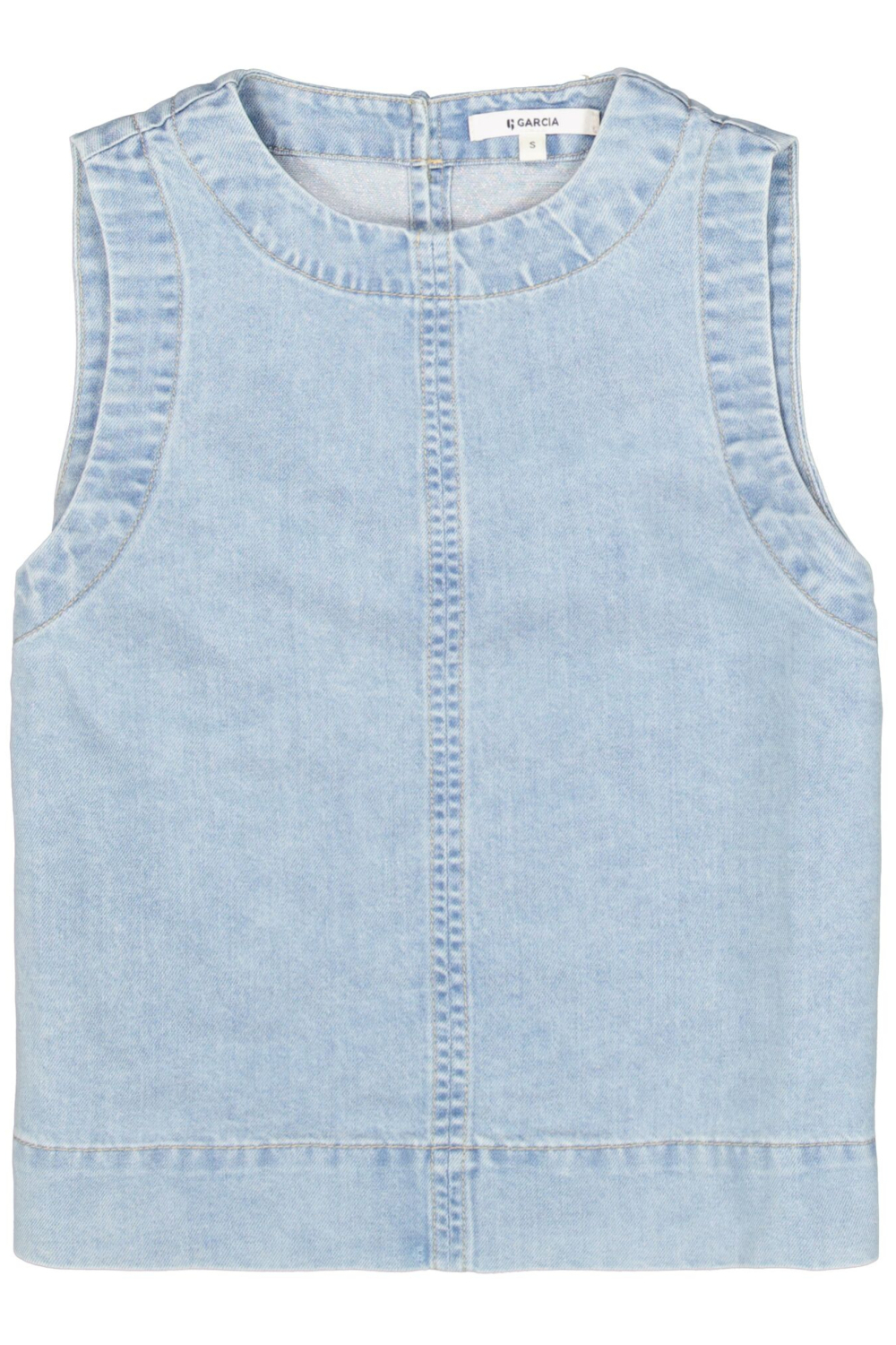 Dit stijlvolle denim top van Garcia is een veelzijdige toevoeging aan je zomergarderobe. Ontworpen met een elegante ronde hals en een regular fit pasvorm, biedt het een frisse look voor warme dagen. De lichte bleached wash geeft het een moderne twist, terwijl de subtiele stiksels langs de naden een verfijnde touch toevoegen. Met zijn korte mouwen en comfortabele regular fit is deze top ideaal voor casual settings of een ontspannen dagje uit. Je kunt deze Garcia denim top moeiteloos combineren met een luchtige rok of je favoriete jeans voor een casual uitstraling. Of je nu een middag doorbrengt in het park of geniet van een zonnige terrasdag, deze top past perfect bij elke zomerse gelegenheid. Dankzij de knoopsluiting aan de achterkant is hij niet alleen praktisch maar ook stijlvol, waardoor je moeiteloos een comfortabele en trendy outfit kunt samenstellen.