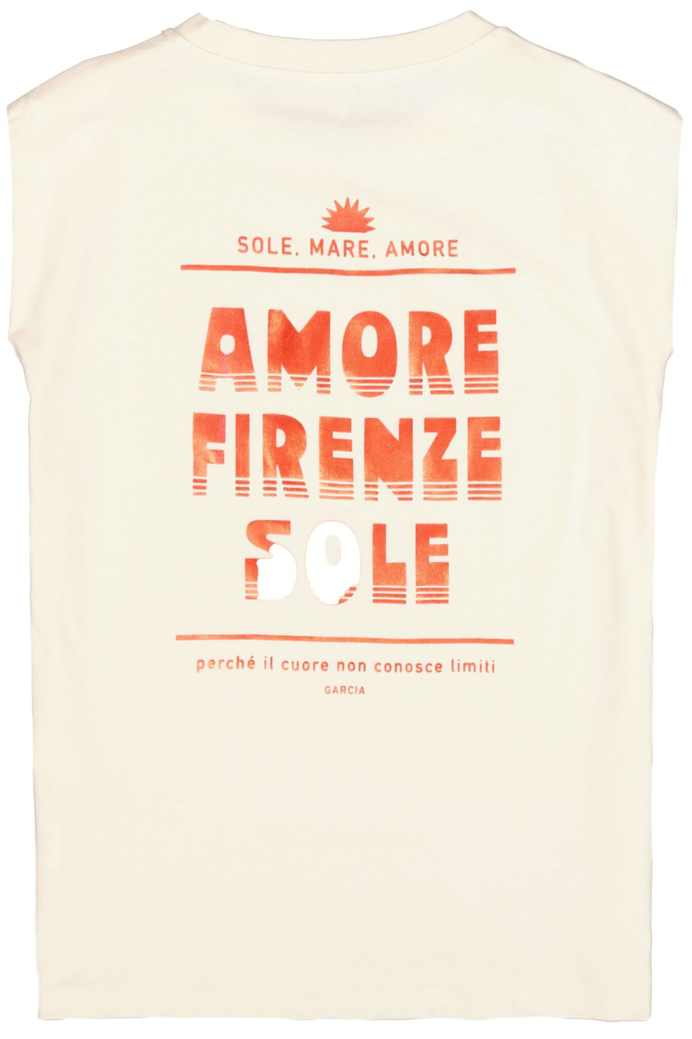 Deze casual top van Garcia, in de kleur Whitecap, is een moderne aanvulling op jouw lente garderobe. Gemaakt van 100% katoen, biedt deze mouwloze top een comfortabele en luchtige optie voor warme dagen. Op de achterkant vind je een opvallende rode tekstprint die het geheel een speelse uitstraling geeft. De ronde halslijn zorgt voor een klassieke en veelzijdige look, ideaal voor zowel ontspannen als meer geklede gelegenheden. Met zijn regular fit en normale lengte is deze top gemakkelijk te combineren met verschillende stijlen. Perfect in combinatie met een rok voor een zomerse look of met een spijkerbroek voor een casual dagje uit. De subtiele grafische details en de hoogwaardige afwerking maken deze Garcia top tot een stijlvolle keuze voor elke vrouw die houdt van een mix tussen comfort en trendy uitstraling. Vervul je kledingkast dit seizoen met een item dat zowel stijlvol als praktisch is.