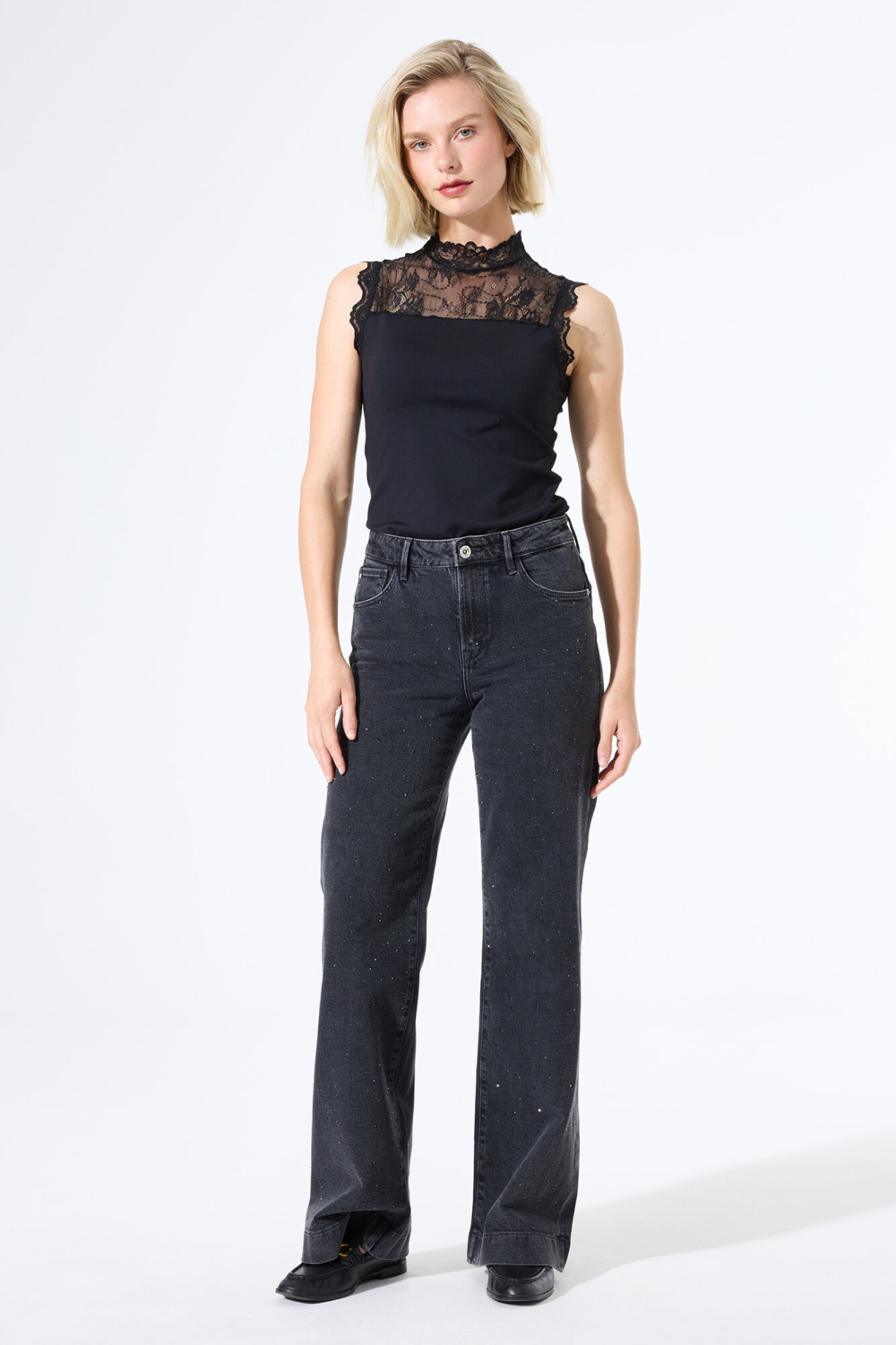 Deze elegante zwarte top van Garcia is een veelzijdige toevoeging aan je wintergarderobe. De delicate kanten details bij de high neck en schouders geven de top een verfijnde uitstraling die zowel stijlvol als comfortabel is. Gemaakt van 85% polyamide en 15% elastan, biedt deze mouwloze top een soepele pasvorm die ideaal is voor dagelijks gebruik of een avondje uit. Of je nu een jeans of een nette rok draagt, de klassieke zwarte kleur zorgt ervoor dat je deze top gemakkelijk kunt combineren met verschillende stijlen.