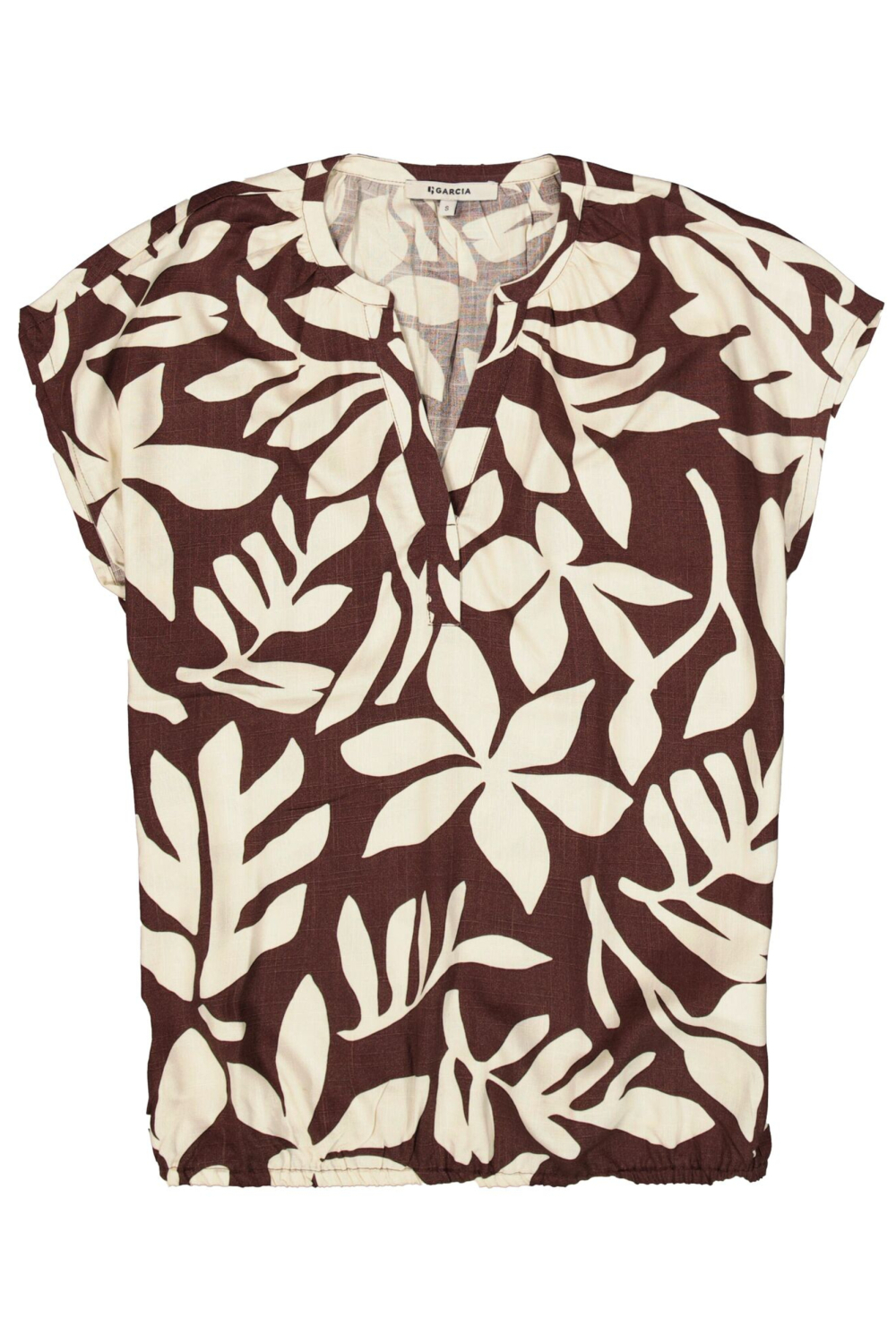 Deze stijlvolle dames top van Garcia is een veelzijdige keuze voor je lente garderobe. Gemaakt van 100% viscose, zorgt deze top voor een luchtig en comfortabel gevoel tijdens warmere dagen. Het grafische patroon met een speelse, bladachtige print in bruintinten maakt het een opvallende aanvulling op je casual stijl. De V-hals geeft een subtiele elegantie, terwijl de korte mouwen zorgen voor een ontspannen look. Dankzij de regular fit en normale lengte is deze top ideaal voor diverse gelegenheden. Combineer het met een lichte jeans voor een dagje uit, of draag het met een nette broek naar een informele bijeenkomst. Het is een perfecte keuze voor zowel ontspannen als meer formele activiteiten, zonder concessies te doen aan comfort of stijl. Met Garcia ben je altijd goed gekleed, ongeacht het moment.