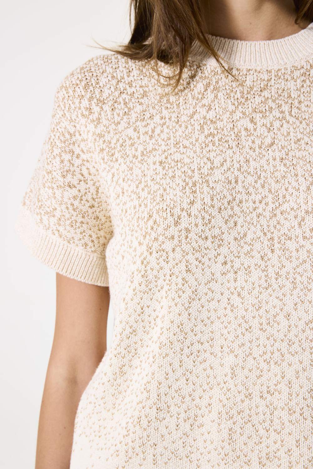 Deze elegante trui van Garcia, onderdeel van hun knitwear collectie, is een veelzijdige toevoeging aan je herfstgarderobe. De trui is uitgevoerd in een zachte whitecap tint met subtiele glitters die een vleugje glamour toevoegen. De regular fit pasvorm en korte mouwen maken hem comfortabel voor elke dag. De ronde halslijn en de hoogwaardige mix van 79% katoen met 21% metaalgaren zorgen voor een aangename draagervaring, perfect voor een frisse herfstdag. De verfijnde uitstraling van deze trui maakt hem geschikt voor zowel casual als meer geklede gelegenheden. Combineer hem met een stijlvolle rok voor een dag op kantoor, of draag hem op een jeans voor een relaxte weekendlook. De normale lengte maakt deze trui eenvoudig te combineren met diverse outfits. Of je nu een dag in de stad doorbrengt of een informeel diner hebt, deze trui biedt de perfecte balans tussen stijl en comfort.