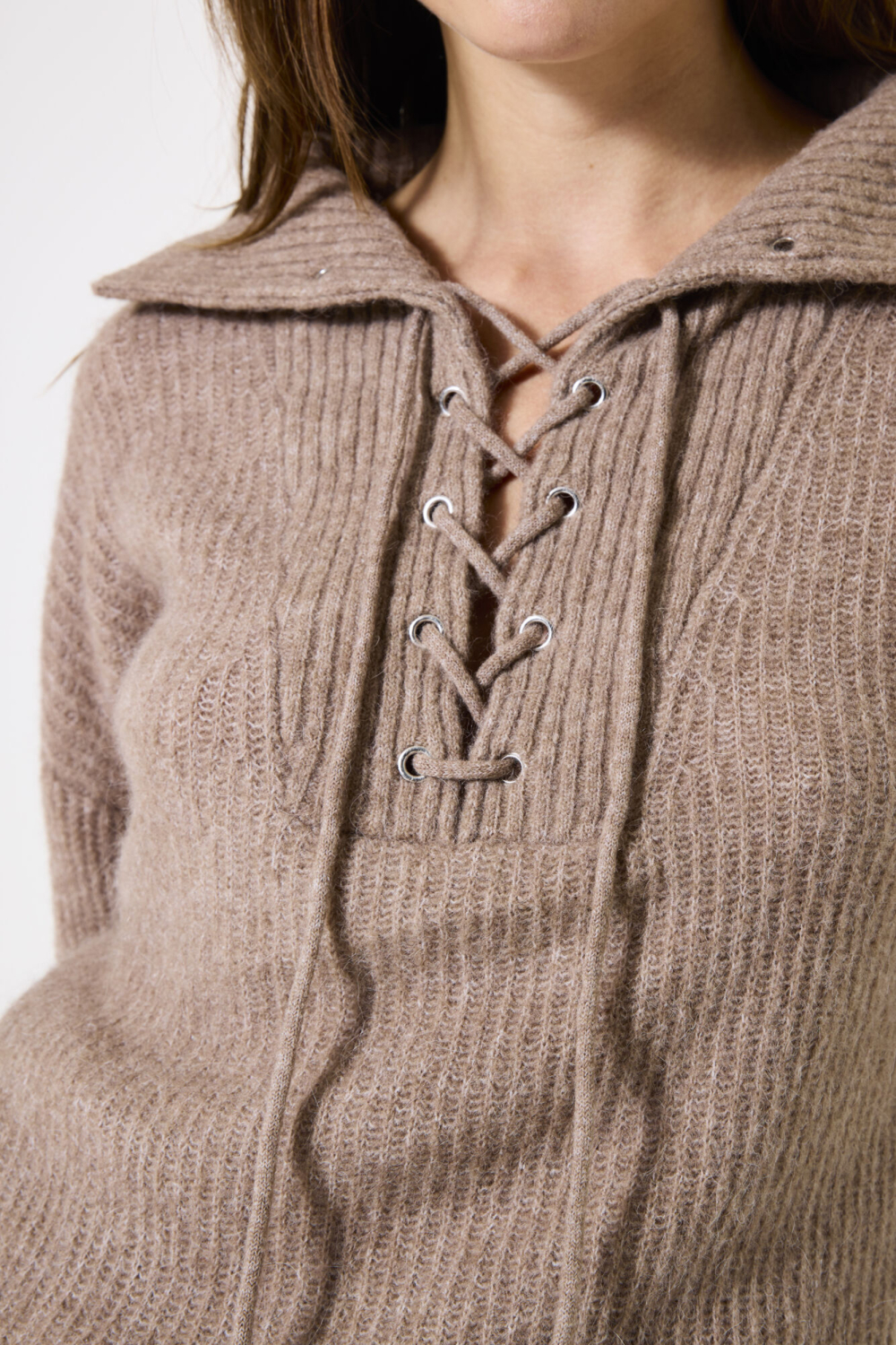 Deze stijlvolle knitwear trui van Garcia in de kleur taupe is een aanwinst voor je wintergarderobe. Met een regular fit pasvorm en een gemeleerd patroon, biedt deze trui zowel comfort als een moderne look. De high neck met de opvallende vetersluiting aan de voorkant geeft een uniek detail dat de trui net dat beetje extra geeft. De lange mouwen en het zachte materiaal maken het ideaal voor koude dagen. Draag deze trui van Garcia tijdens een casual dagje uit of naar een informele bijeenkomst. De normale lengte maakt het makkelijk te combineren, bijvoorbeeld met een chique rok en laarzen, zoals op de foto. De neutrale taupekleur zorgt ervoor dat je deze trui met verschillende stijlen en kleuren kunt matchen. Of je nu een rustige wandeling maakt of gezellig koffie gaat drinken, deze trui biedt de perfecte balans tussen stijl en gemak.