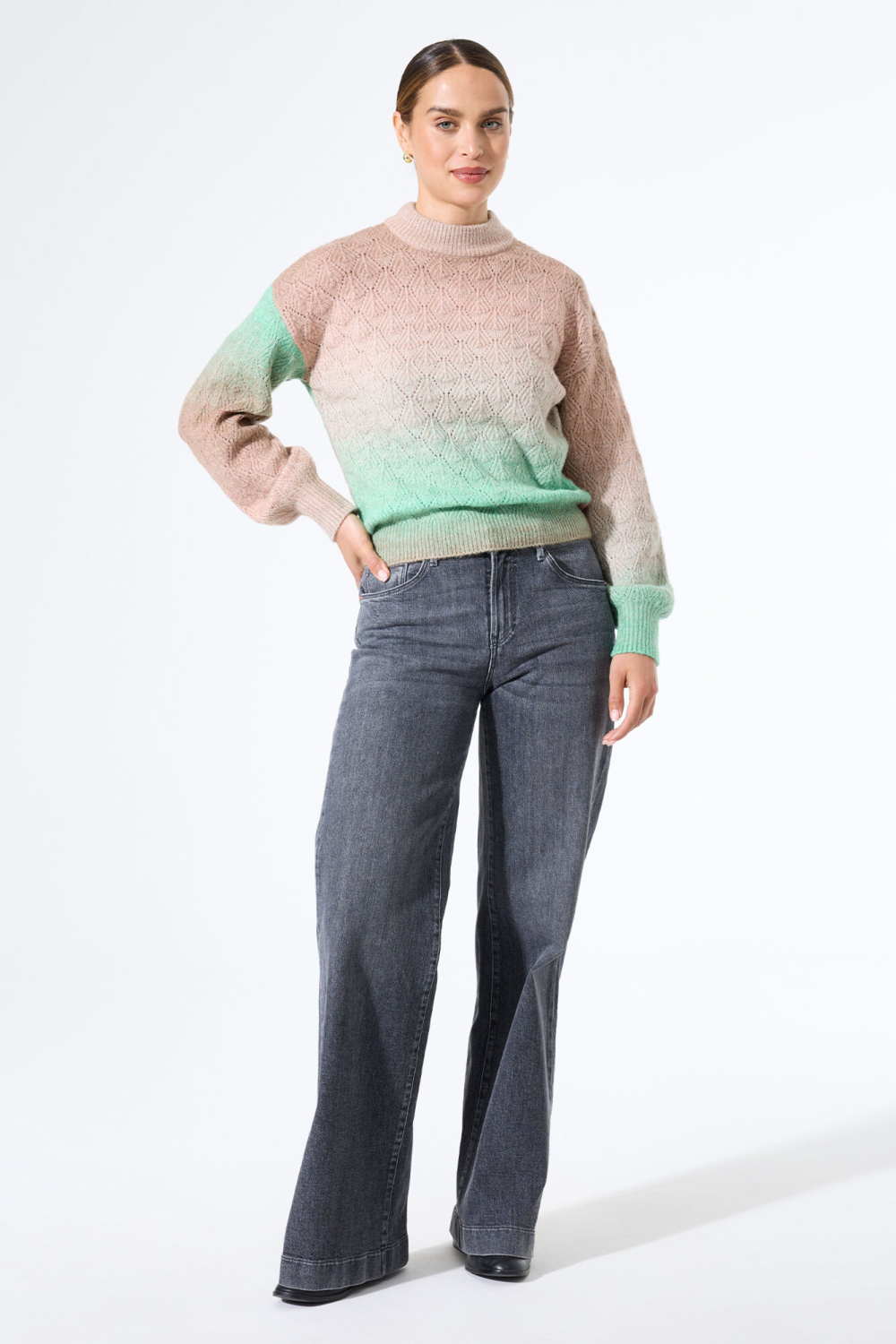 De damestrui van Garcia biedt een stijlvolle aanvulling op jouw wintergarderobe. Deze knitwear trui heeft een regular fit en is ontworpen met een unieke structuur in de stof, wat zorgt voor een verfijnd en aantrekkelijk patroon. De subtiele kleurverloop van zacht roze naar mintgroen geeft de trui een frisse, moderne uitstraling. De high neck halslijn biedt extra warmte en maakt de trui ideaal voor koelere dagen. Met zijn lange mouwen en normale lengte is deze trui niet alleen modieus maar ook uiterst comfortabel. Perfect voor een ontspannen dag thuis of een casual uitstapje in de stad. Combineer hem met een paar jeans voor een tijdloze, nonchalante look. De elegante structuur en het opvallende kleurverloop maken deze trui van Garcia tot een opvallend stuk voor elke garderobe. Een veelzijdige keuze die gemakkelijk te combineren is met andere winterse kledingstukken.