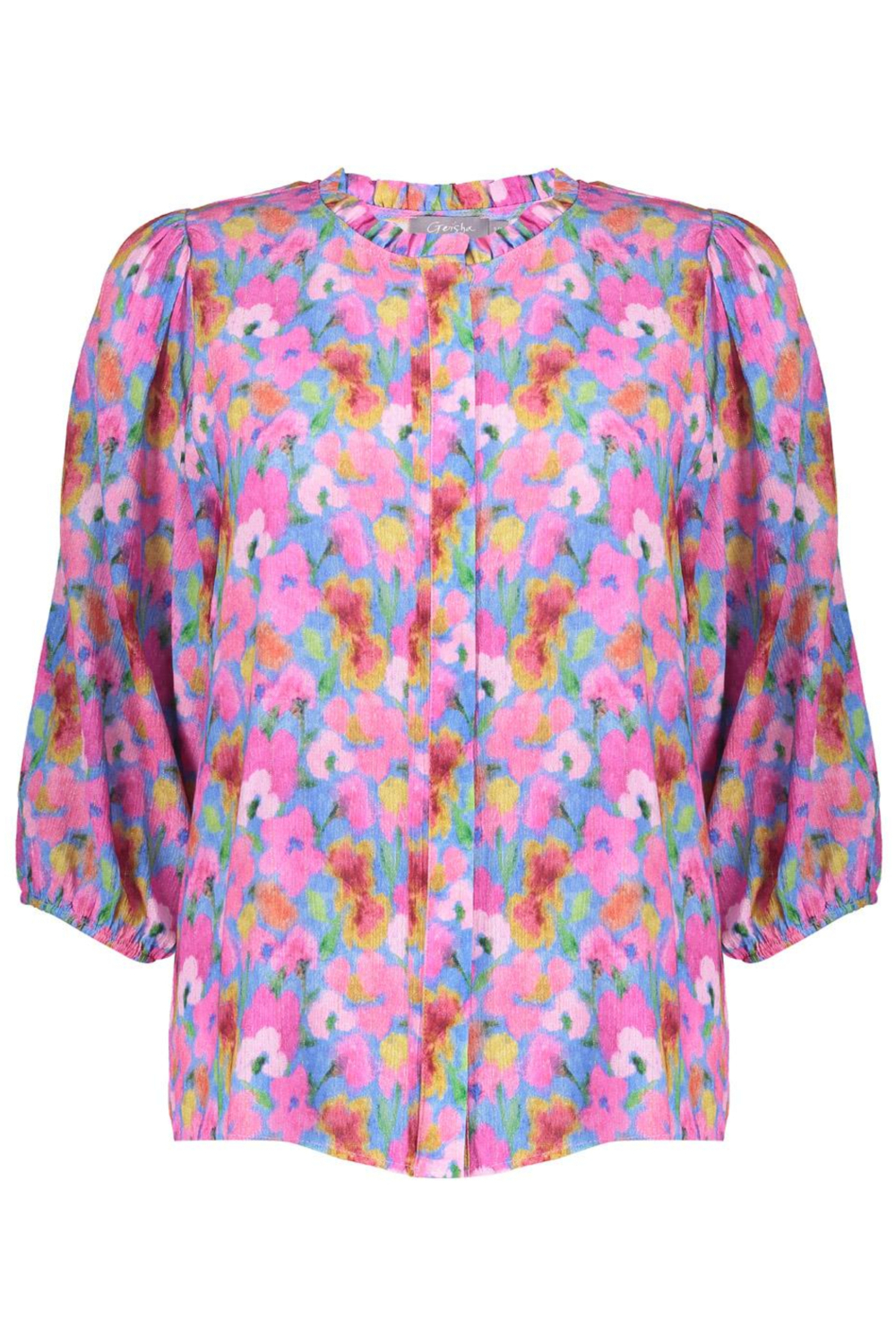 Deze kleurrijke Geisha blouse is een speelse toevoeging aan je lentegarderobe. Gemaakt van 100% viscose, zorgt het voor een luchtig en comfortabel gevoel. De blouse heeft een regular fit en een ronde halslijn die het alledaagse design verfijnen. Het opvallende bloemenpatroon met roze, blauwe en gele tinten maakt het een echte blikvanger. Met een knoopsluiting en de driekwart mouwen is deze blouse ideaal voor zowel casual als iets formelere gelegenheden. Met zijn levendige kleuren en normale lengte is deze Geisha damesblouse perfect te combineren met een lichte jeans of een elegante rok. Of je nu een brunch met vrienden hebt of een zomerse wandeling wilt maken, deze blouse biedt je een ontspannen en modieuze uitstraling. De veelzijdigheid van het patroon zorgt ervoor dat je hem bij verschillende stijlen kunt dragen, waardoor hij een onmisbaar item in je collectie wordt.