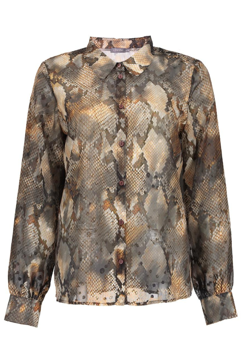 Deze opvallende blouse van Geisha combineert moeiteloos stijl met comfort. De regular fit pasvorm en het unieke animal patroon geven deze damesblouse een eigentijdse uitstraling. Gemaakt van 97% polyester en 3% viscose, biedt het een lichte en soepele stof die prettig aanvoelt tijdens de wintermaanden. De blouse heeft lange mouwen en een klassieke puntkraag, wat het geheel netjes en toch veelzijdig maakt voor diverse gelegenheden.