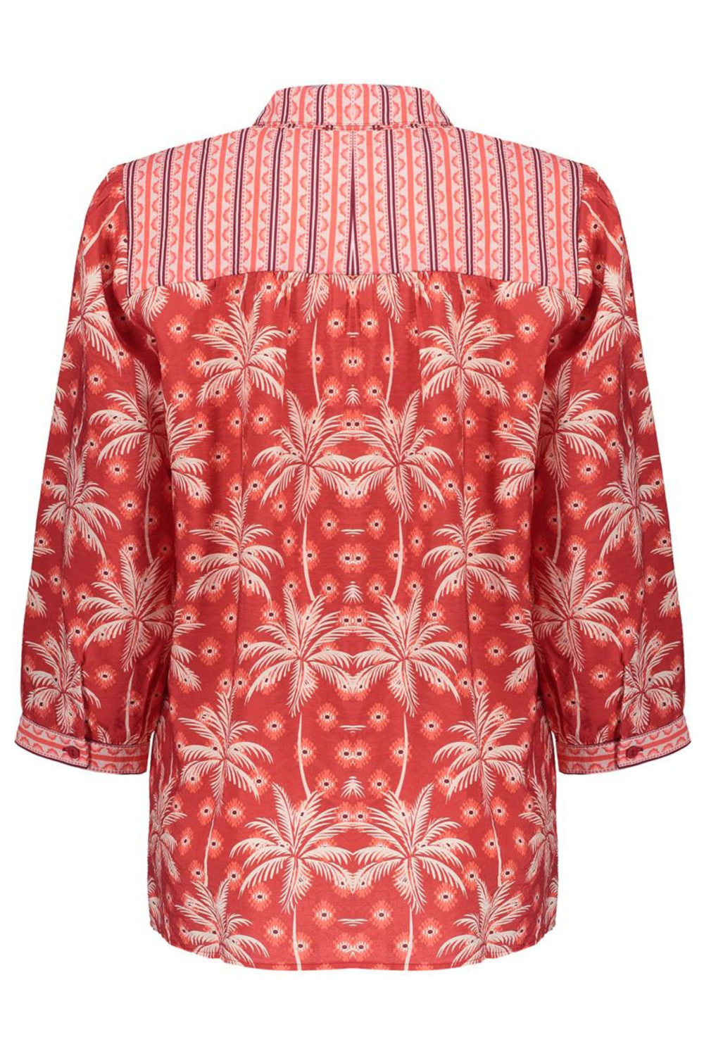 Deze charmante blouse van Geisha is een opvallend stuk voor elke lente- en zomergarderobe. De blouse heeft een energieke roodkleurige basis met een speels bloemenpatroon dat het geheel levendig maakt. Gemaakt van een zachte mix van 86% viscose en 14% polyamide, biedt deze blouse een comfortabele en ademende draagervaring. De regular fit en de 3/4 mouwlengte zorgen voor een ontspannen maar toch stijlvolle uitstraling, perfect voor casual dagen of een informele bijeenkomst.
