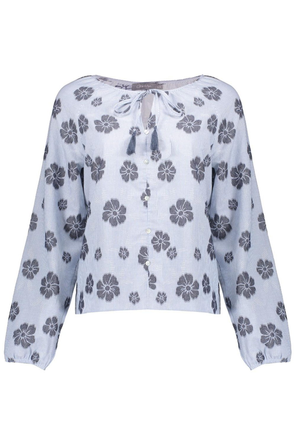 Deze stijlvolle blouse van Geisha is een veelzijdige toevoeging aan je garderobe. Het kledingstuk heeft een casual stijl en een regular pasvorm, waardoor het geschikt is voor diverse gelegenheden. De combinatie van 74% katoen en 26% polyester zorgt voor een comfortabele en duurzame stof die ideaal is voor het lenteseizoen. Met de speelse streepjespatroon en romantische bloemenprint, breng je een vleugje verfrissing aan in je dagelijkse outfit. De knoopsluiting aan de voorkant voegt een elegante touch toe, terwijl de ronde hals een subtiele, vrouwelijke uitstraling biedt. Dankzij de lange mouwen en normale lengte kun je deze Geisha blouse makkelijk combineren met een spijkerbroek voor een casual dagje uit, of met een chiquere broek voor een meer formele setting. De bloemenprint geeft een frisse en vrolijke uitstraling, perfect voor informele bijeenkomsten of een ontspannen dag op kantoor. Met deze blouse vind je de perfecte balans tussen comfort en stijl, en ben je altijd klaar voor de dag.