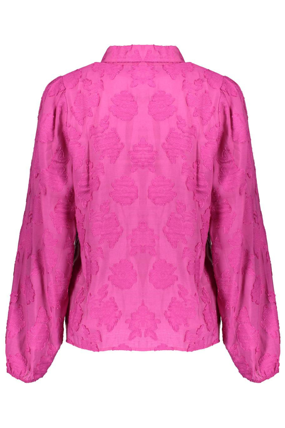 De Geisha damesblouse, gemaakt van 100% viscose, is een comfortabele en stijlvolle toevoeging voor je herfstgarderobe. Deze blouse in een levendige roze tint valt op door het subtiele structuurpatroon, dat een speels detail toevoegt aan het geheel. De regular fit en de puntkraag zorgen voor een klassieke uitstraling die bij veel gelegenheden past. De knoopsluiting aan de voorkant voegt een praktisch element toe zonder in te boeten aan stijl.