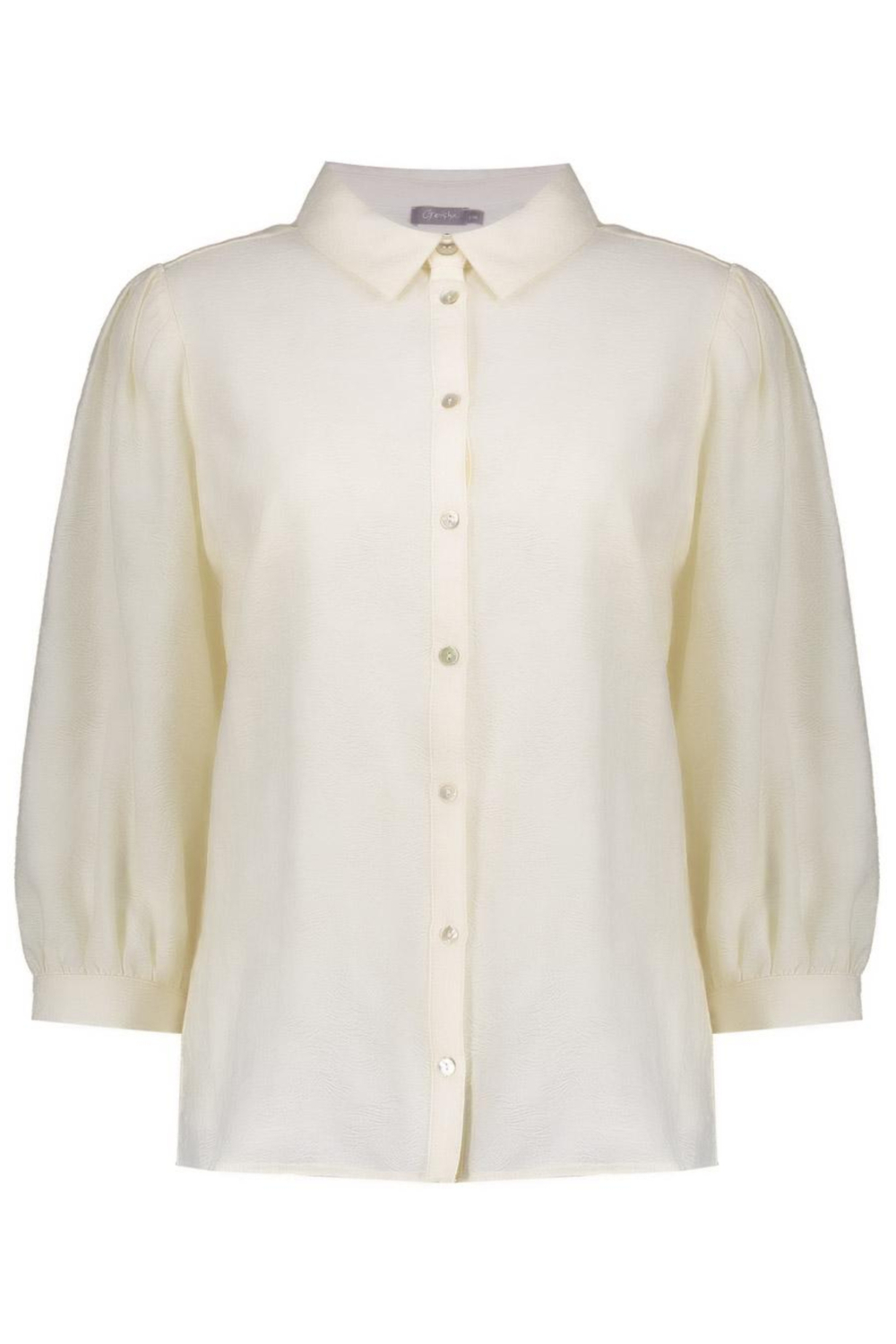 De off-white damesblouse van Geisha is een elegante aanvulling op je casual lente garderobe. Deze blouse, gemaakt van 82% katoen en 18% polyamide, biedt een fijne combinatie van comfort en stijl. De regular fit met een klassieke puntkraag en een knoopsluiting zorgen samen voor een verfijnde uitstraling. Met zijn subtiele structuurpatroon en de 3/4 mouwen, is dit kledingstuk ideaal voor diverse gelegenheden, van een informele werkdag tot een ontspannen lunch met vrienden. De blouse heeft een normale lengte die gemakkelijk te combineren is met verschillende stijlen. Denk aan een combinatie met een spijkerbroek voor een relaxte look, of ga voor een meer geklede uitstraling met een nette broek. De off-white kleur maakt het een veelzijdig stuk dat je moeiteloos kunt combineren met diverse kleuren en accessoires. Of je nu een dagje weggaat of een informele bijeenkomst bijwoont, deze Geisha blouse biedt een stijlvolle en comfortabele optie die je outfit compleet maakt.