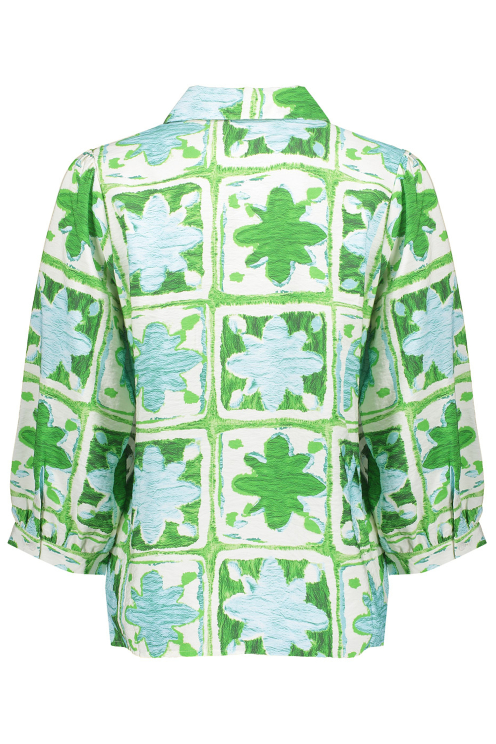 Deze casual damesblouse van Geisha is een charmante toevoeging aan je zomergarderobe. Het bloemmotief in levendige groene en blauwe tinten zorgt voor een frisse uitstraling, perfect voor zonnige dagen. De regular fit en de stoffenmix van 83% viscose en 17% polyamide bieden comfortabel draaggemak. Dankzij de subtiele V-hals en de knoopsluiting krijgt de blouse een verfijnde touch, terwijl de driekwart mouwen geschikt zijn voor zowel informele als iets meer geklede gelegenheden. De blouse past perfect bij een lichte broek voor een ontspannen zomerse look, ideaal voor een brunch met vrienden of een wandeling in het park. De normalere lengte maakt het gemakkelijk te dragen, of je nu op het terras zit of een dagje naar het strand gaat. Dankzij het veelzijdige design en het speelse patroon, vind je altijd wel een gelegenheid om deze blouse uit de kast te pakken. Maak je outfit compleet met eenvoudige accessoires en je bent klaar om je dag stijlvol tegemoet te gaan.
