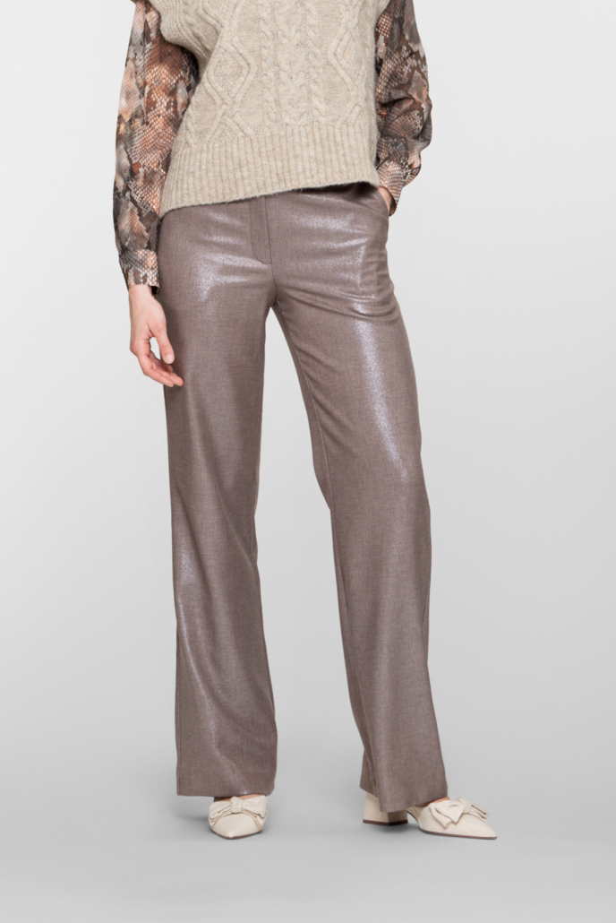De glanzende finish maakt deze broek ideaal voor casual bijeenkomsten, maar ook voor feestelijke gelegenheden waar je net iets extra's wilt uitstralen. Combineer de broek met een effen top of een opvallend vest om de look compleet te maken. De normale lengte en vrouwelijke pasvorm zorgen ervoor dat deze broek makkelijk te dragen is, of je nu onderweg bent naar een gezellig diner of een dagje uit met vrienden. Met deze broek van Geisha voeg je zonder moeite een vleugje glamour toe aan je garderobe.