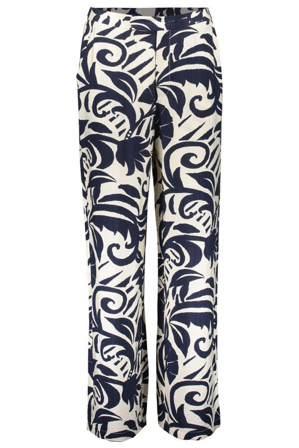 Deze stijlvolle damesbroek van Geisha creëert een speels silhouet met zijn opvallende bloemenpatroon in donkerblauw en wit. De broek heeft een straight fit pasvorm die zorgt voor een comfortabel maar modieus uiterlijk. Dankzij de elastische boord sluit de broek makkelijk aan op je middel, wat voor extra draagcomfort zorgt. Gemaakt van een luxe mix van 90% viscose en 10% polyamide, biedt deze broek een heerlijk lichte en soepele stof die ideaal is voor dagelijks gebruik. De broek is voorzien van handige steekzakken en valt normaal in de lengte, waardoor hij veelzijdig te combineren is. Perfect voor een casual uitstraling op kantoor of een ontspannen dag uit. Combineer hem met een effen top en je favoriet paar sneakers of sandalen voor een zomerse look. Met deze broek voeg je een opvallend, maar vooral comfortabel item toe aan je garderobe.