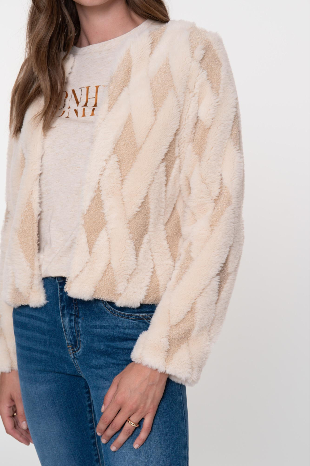 Deze elegante ecru jas van Geisha is een veelzijdige toevoeging aan je wintergarderobe. De grafische patronen en de korte lengte geven de jas een trendy uitstraling, terwijl de regular fit zorgt voor comfort. Met een ronde hals en haaksluiting is deze jas eenvoudig te combineren met andere kledingstukken. Het gebruik van 100% polyester biedt warmte en is ideaal voor casual gelegenheden.