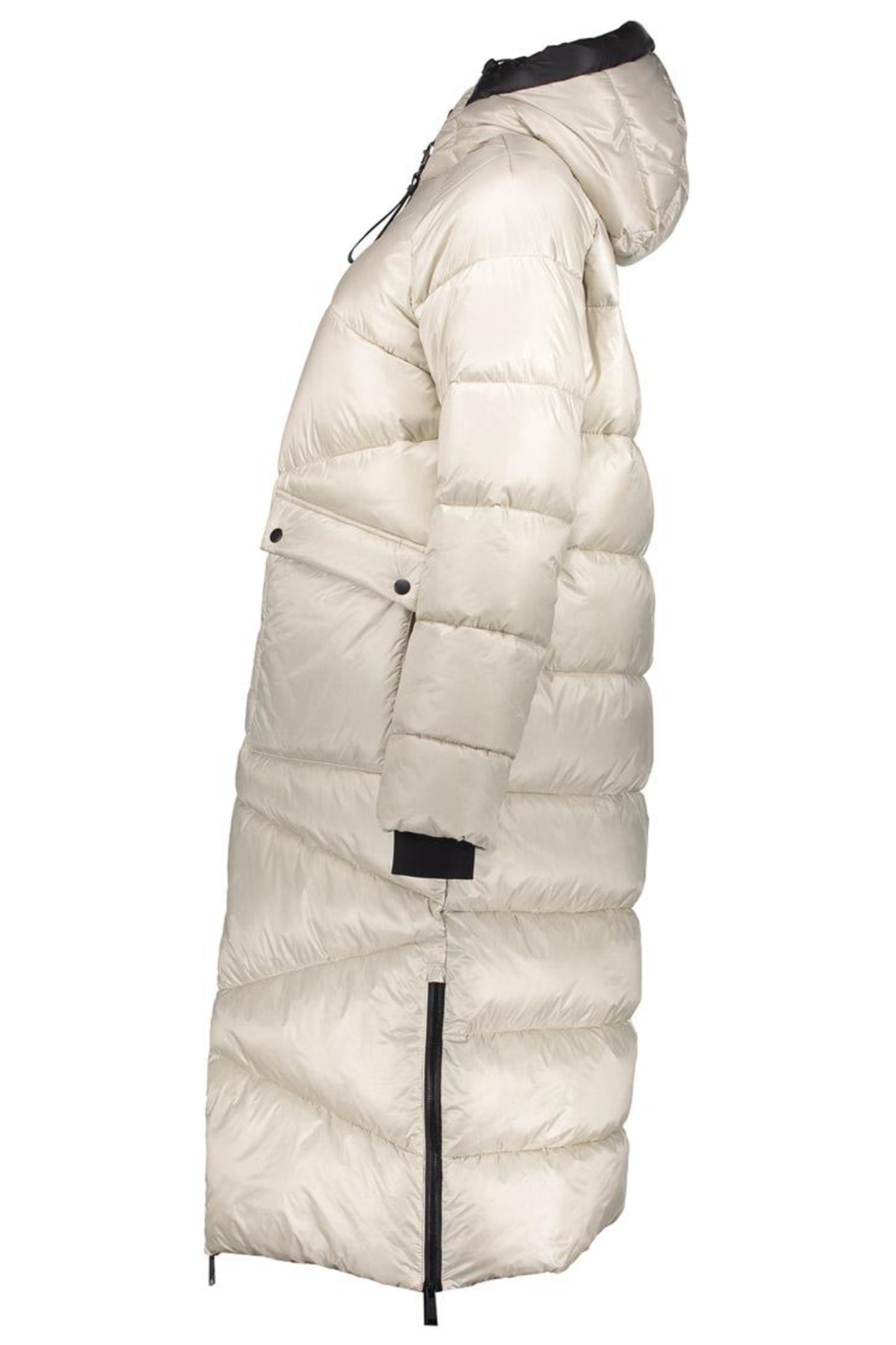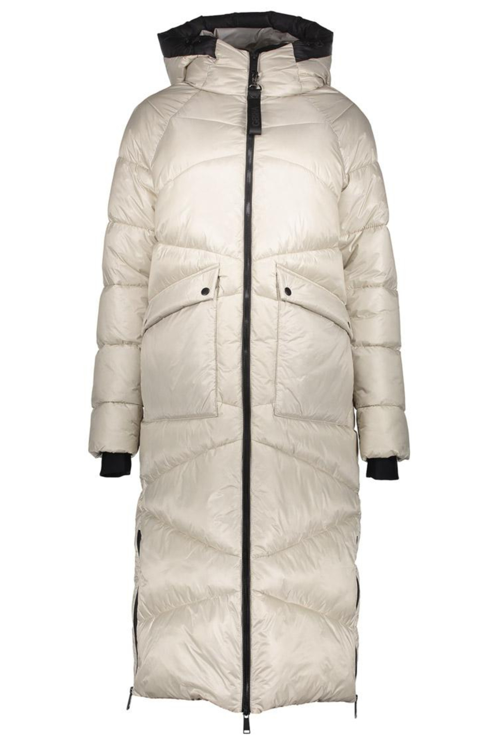 Deze lange damesjas van Geisha is een stijlvolle keuze voor de winter. De jas is gemaakt van 100% nylon en biedt dankzij de gewatteerde voering extra warmte. Met de regular pasvorm en de lange lengte blijf je comfortabel, terwijl de capuchon je beschermt tegen natte weersomstandigheden. De jas heeft een ritssluiting en twee praktische klepzakken, perfect om je handen warm te houden of kleine spullen mee te nemen. De subtiele kitkleur maakt het eenvoudig om deze jas te combineren met andere winteritems in je garderobe.