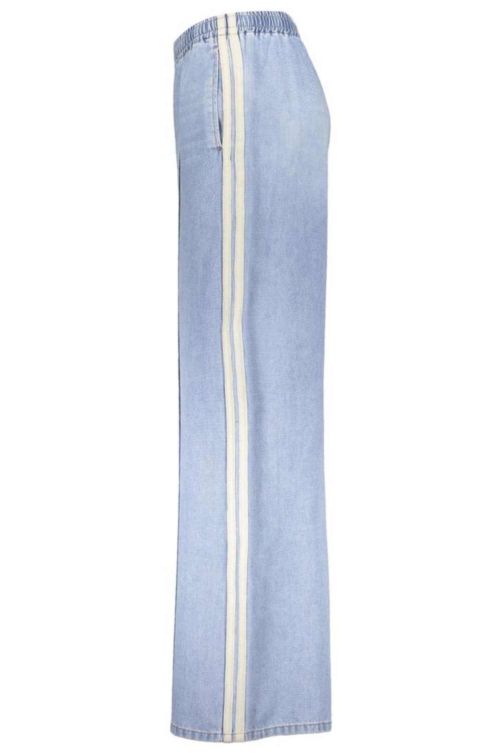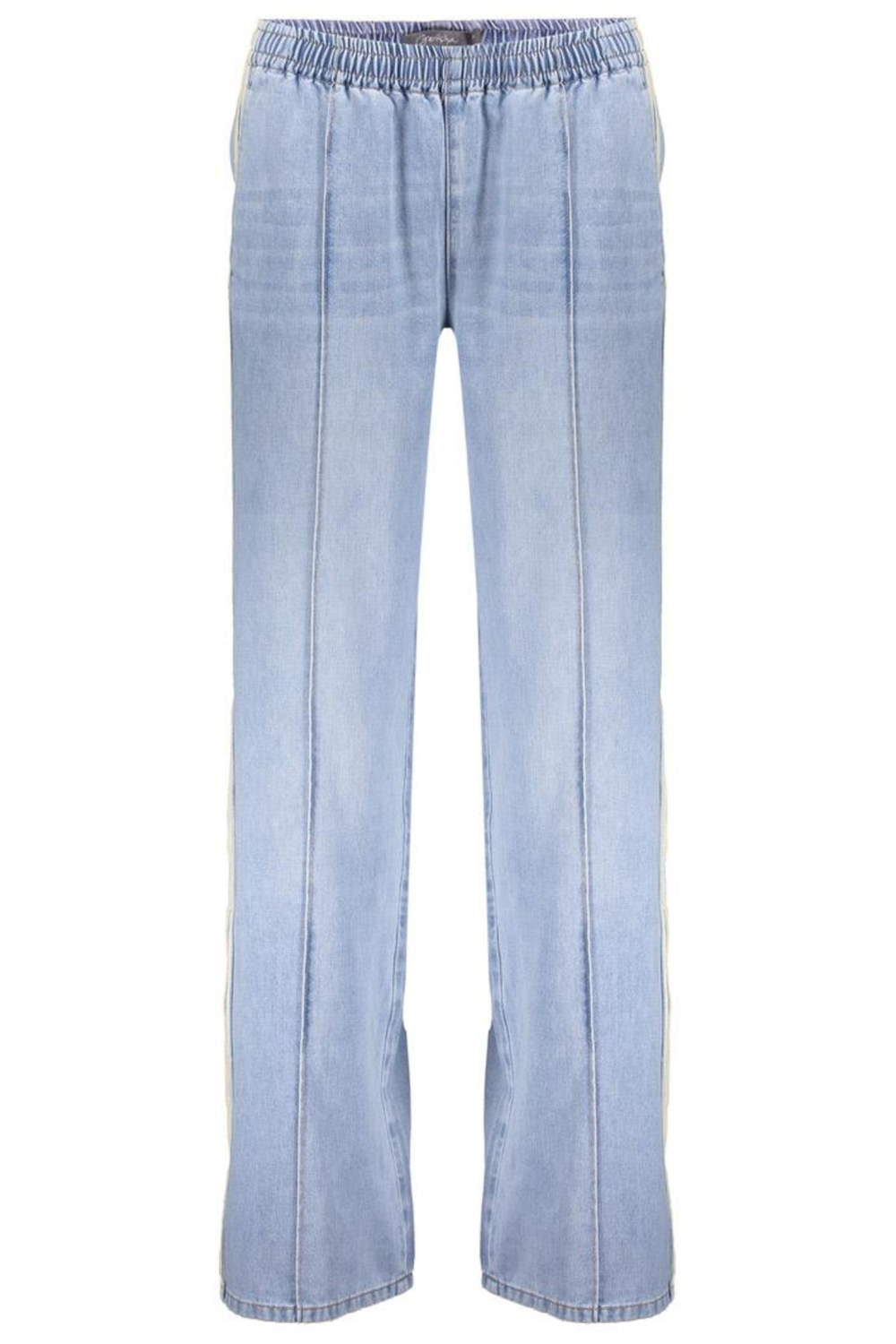 De Geisha jeans met wide leg en een bleached wash is een frisse toevoeging aan je garderobe. Deze damesjeans heeft een regular waist en een elastische boord, wat zorgt voor draagcomfort zonder in te boeten op stijl. De lichtblauwe strepen langs de zijkanten geven de jeans een speelse en moderne twist, terwijl de steekzakken praktisch zijn voor dagelijks gebruik. Perfect voor zowel ontspannen als meer formele gelegenheden. Gemaakt van een mix van katoen, polyester en viscose, biedt deze denim broek zowel duurzaamheid als zachtheid. Combineer de jeans met een luchtige blouse voor een casual dagje uit of met een nette top voor een etentje in de lente. Dankzij de normale lengte is hij geschikt voor allerlei schoentypen, van sandalen tot hakken. Deze Geisha wide leg jeans biedt veelzijdigheid en comfort in één stijlvol pakket.