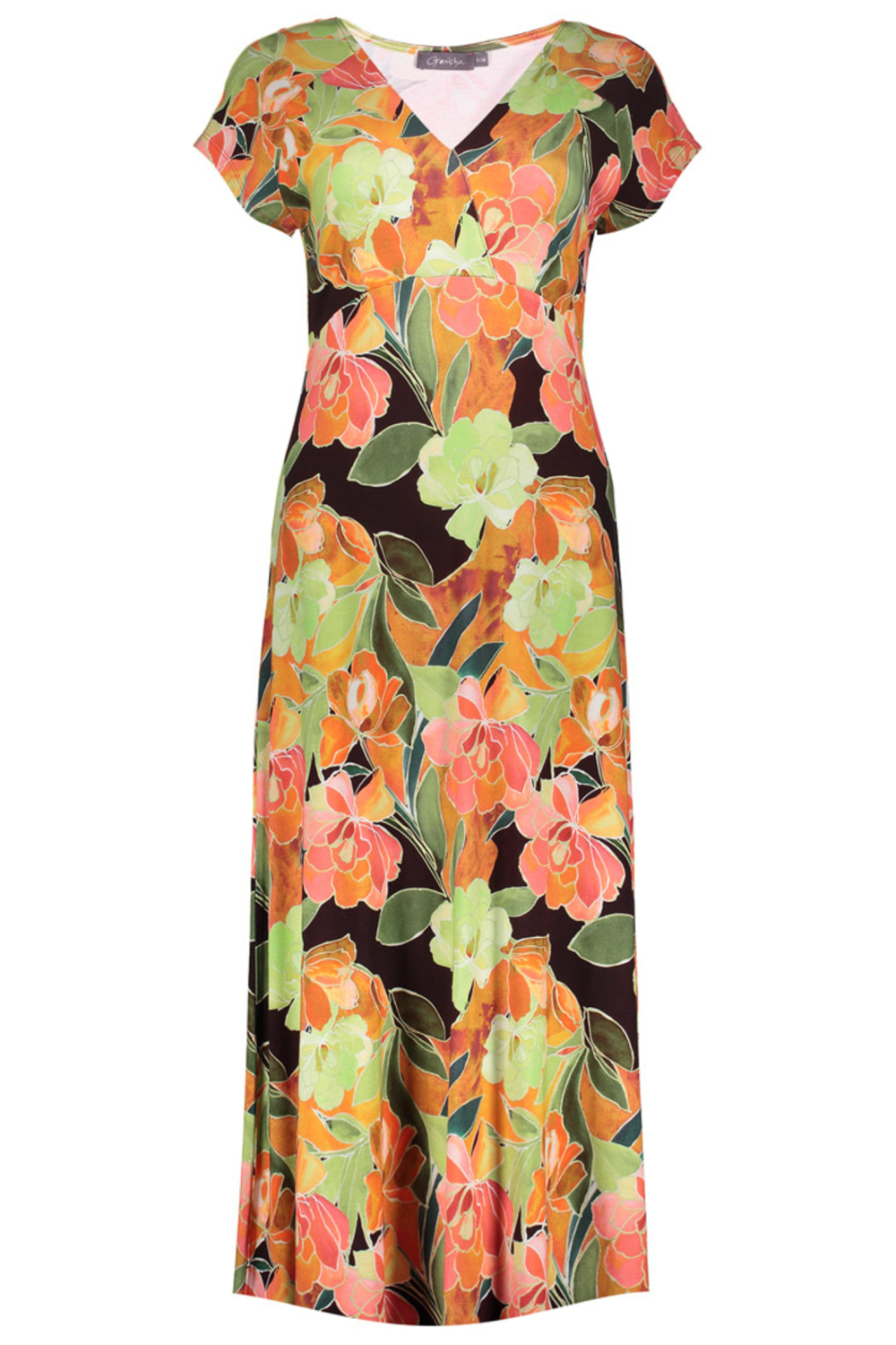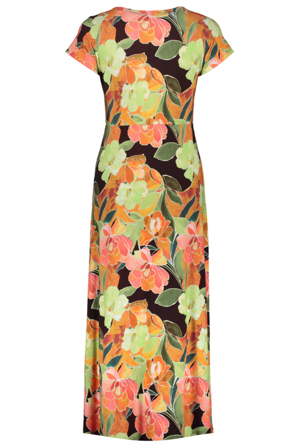 Deze bloemige zomerjurk van Geisha is een veelzijdige toevoeging aan je garderobe. Met zijn levendige bloemenpatroon in warme tinten, biedt deze jurk een frisse en speelse uitstraling, perfect voor casual dagen. De V-hals en korte mouwen geven een luchtige touch, terwijl de regular fit comfortabel aanvoelt voor dagelijks gebruik. De lengte van 7/8 maakt de jurk geschikt voor verschillende gelegenheden, van een ontspannen middag in het park tot een zomerse brunch. Gemaakt van een zachte mix van 95% viscose en 5% elastan, zorgt deze jurk voor een prettig draagcomfort, ideaal op warme dagen. Je kunt deze jurk makkelijk combineren met sandalen of sneakers voor een casual look, of met hakken voor een iets gekledere stijl. Of je nu naar een informele bijeenkomst gaat of een wandeling door de stad maakt, deze jurk van Geisha biedt je een stijlvolle en comfortabele outfit-optie die je elke zomer weer uit de kast wilt pakken. Meer informatie: De totale lengte is 126 cm bij maat S/36.