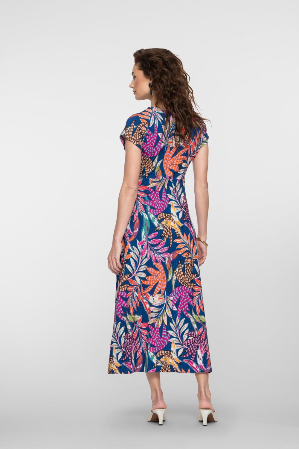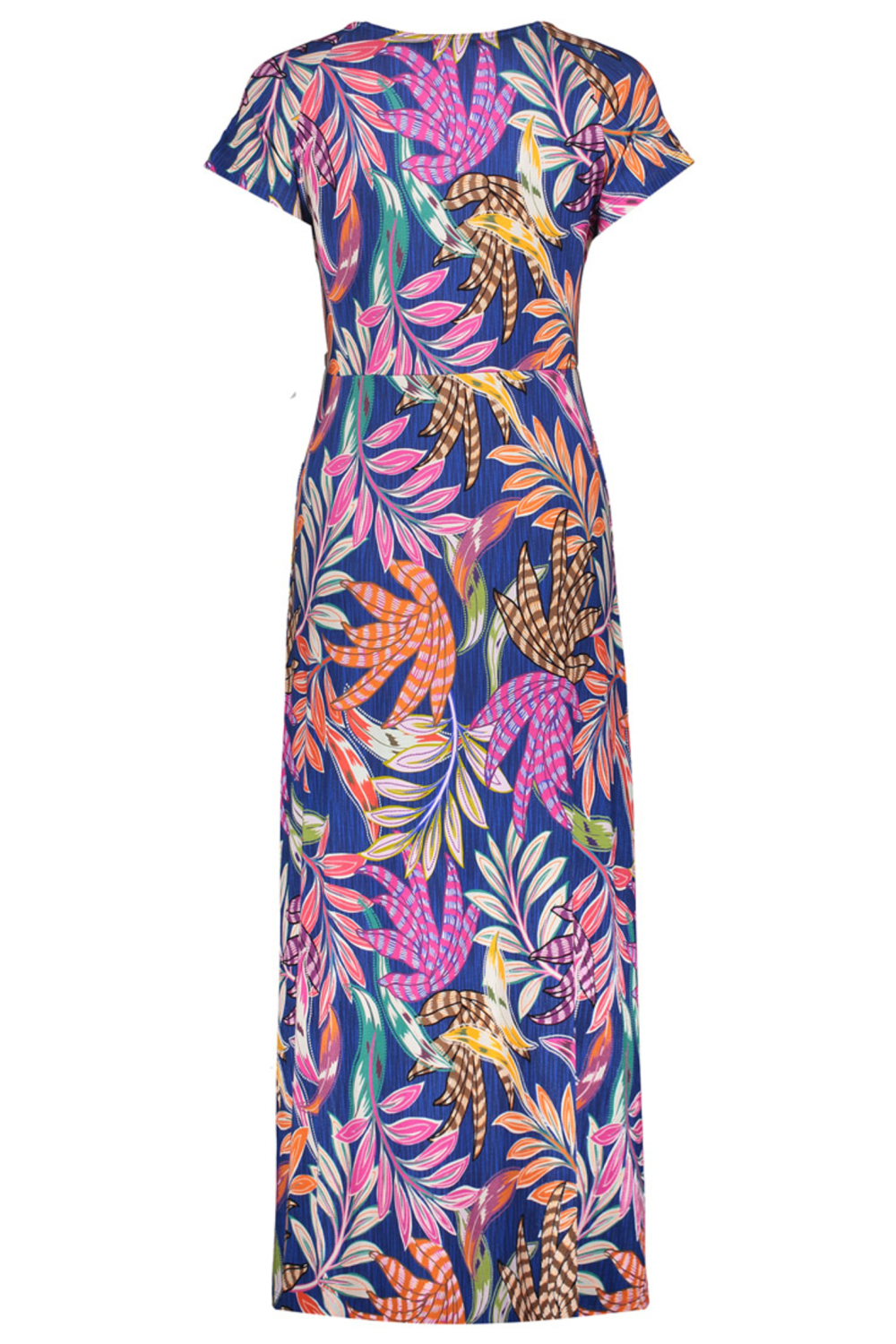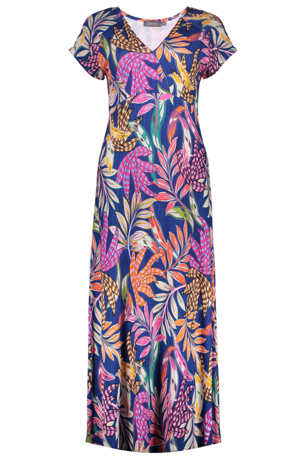 Deze elegante Geisha jurk brengt een vleugje zomerse flair in je garderobe. De jurk is gemaakt van een soepele viscosemix, wat zorgt voor een comfortabele en vloeiende pasvorm. Met een kleurrijk bloemenpatroon trekt deze jurk direct de aandacht en geeft het je een frisse uitstraling. De V-hals en korte mouwen dragen bij aan een luchtige look, ideaal voor warme dagen. De lengte van 7/8 is perfect om zowel met sandalen als stijlvolle hakken te dragen, zodat je gemakkelijk van een casual naar een meer verfijnde look kunt wisselen. Of je nu een dagje naar het strand gaat of een zomerse avondwandeling maakt, deze Geisha jurk is een veelzijdige keuze die je niet in de steek laat. De regular fit zorgt ervoor dat je je de hele dag comfortabel voelt, terwijl het speelse ontwerp je in elke situatie stijlvol laat verschijnen. De jurk is ontworpen met een regular fit, waardoor het geschikt is voor diverse lichaamsvormen en een flatterende uitstraling biedt voor elke gelegenheid. Meer informatie: De totale lengte is 126 cm bij maat S/36.