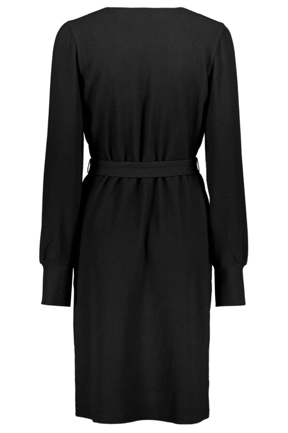 Deze elegante Geisha jurk is een veelzijdige aanwinst voor je garderobe. Uitgevoerd in het zwart met een subtiele structuur, biedt deze jurk een verfijnde en moderne uitstraling. Het materiaal van 97% polyester en 3% elastan zorgt voor een comfortabele en soepele pasvorm. De halflange lengte en het casual design maken deze jurk geschikt voor zowel dagelijkse gelegenheden als informele bijeenkomsten. Dankzij de V-hals en de lange mouwen kun je hem makkelijk combineren met allerlei accessoires.