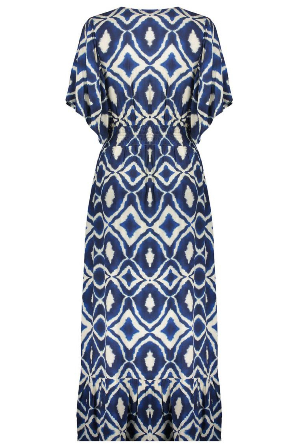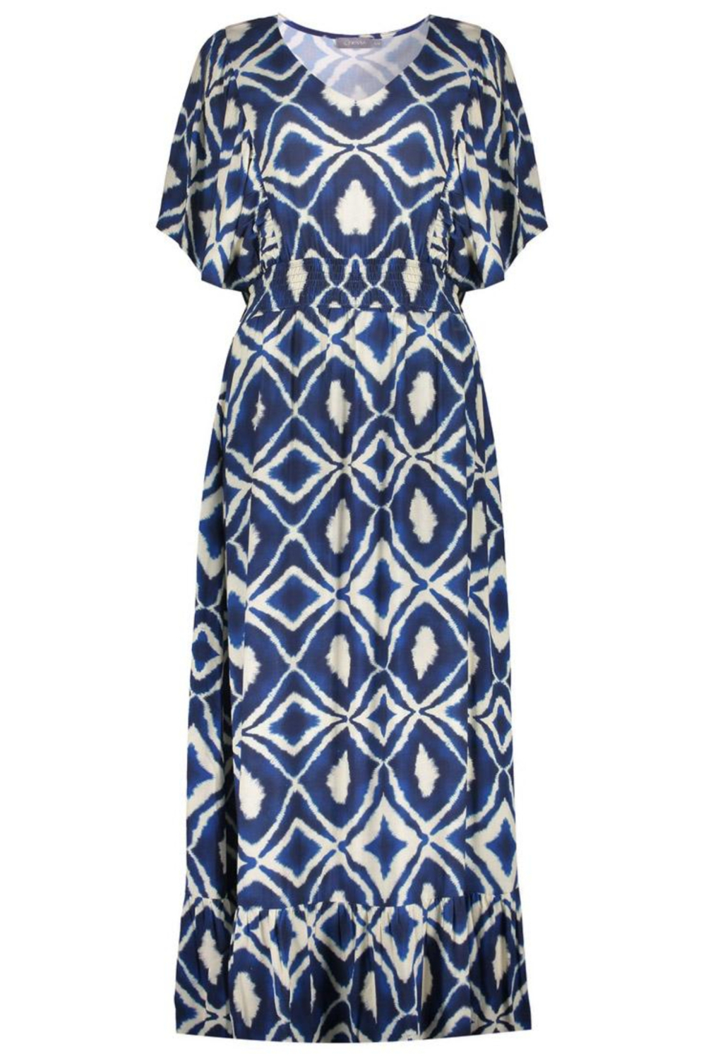Deze elegante damesjurk van Geisha is de perfecte keuze voor zonnige zomerdagen. Met een opvallend Aztec-patroon in diepblauw en wit, trekt deze jurk meteen de aandacht. De lange pasvorm en de zachte viscose stof zorgen voor een comfortabele en luchtige draagervaring. De jurk heeft een stijlvolle V-hals en korte mouwen, die het geheel een casual maar verfijnde uitstraling geven. Met zijn veelzijdige stijl is deze jurk ideaal voor diverse gelegenheden. Of je nu een ontspannende wandeling langs de boulevard maakt of een gezellige brunch bijwoont, deze jurk sluit naadloos aan bij elke zomeractiviteit. Dankzij het regular fit ontwerp biedt de jurk zowel comfort als een nette uitstraling. Dit item voegt gemakkelijk een vleugje elegantie toe aan je zomergarderobe. Meer informatie: De totale lengte is 140 cm bij maat S/36.
