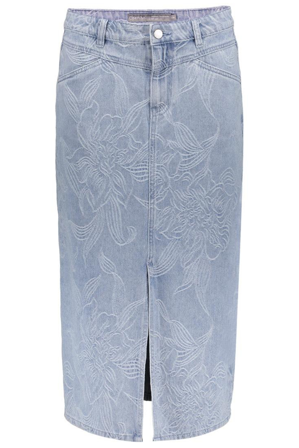 Deze stijlvolle Geisha denim rok met een grafisch patroon is een prachtige toevoeging aan je lente garderobe. Met zijn 7/8 lengte en regular fit pasvorm biedt hij comfort en een moderne uitstraling. Gemaakt van een mix van 85% katoen en 15% polyester, voelt de rok zacht aan en behoudt hij zijn vorm gedurende de dag. De subtiele rinsewash zorgt voor een frisse look, ideaal voor casual gelegenheden of een ontspannen dag op het werk. De Geisha rok onderscheidt zich door zijn kenmerkende grafische steken over de gehele stof, wat een unieke twist geeft aan een klassieke stijl. De regular waist en steekzakken voegen praktische elementen toe zonder concessies te doen aan het design. Combineer de rok met een ontspannen blouse of een snug fit top voor een veelzijdige outfit die geschikt is voor zowel een middagje winkelen als een informele bijeenkomst. Een knoop- en ritssluiting maken het geheel af, terwijl je met de split aan de voorkant voldoende bewegingsvrijheid behoudt. Meer informatie: De totale lengte is 75 cm bij maat S.