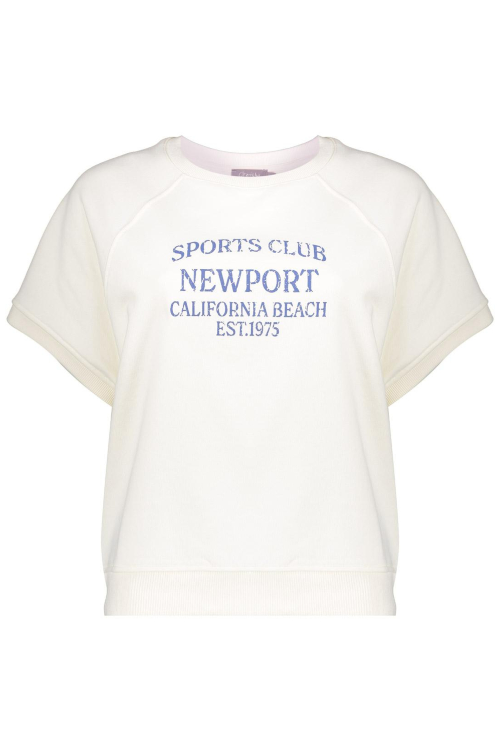Deze casual sweater van Geisha is een trendy aanvulling op je lentegarderobe. Het ontwerp valt op door de stijlvolle tekst 'SPORTS CLUB NEWPORT CALIFORNIA BEACH EST. 1975' in blauw, die een nonchalante look geeft. De sweater heeft een regular fit en een comfortabele ronde hals, wat zorgt voor een ontspannen draagervaring. Dankzij de combinatie van 65% katoen en 35% polyester voelt de stof zacht en licht aan op de huid. Met zijn korte mouwen en normale lengte is deze Geisha sweater ideaal voor informele uitstapjes of relaxte dagen thuis. Hij is makkelijk te combineren met je favoriete jeans of een luchtige short voor een moeiteloze, modieuze uitstraling. Of je nu wandelt langs de kust of geniet van een kop koffie in de stad, deze sweater biedt je altijd een stijlvolle uitstraling zonder in te boeten op comfort.
