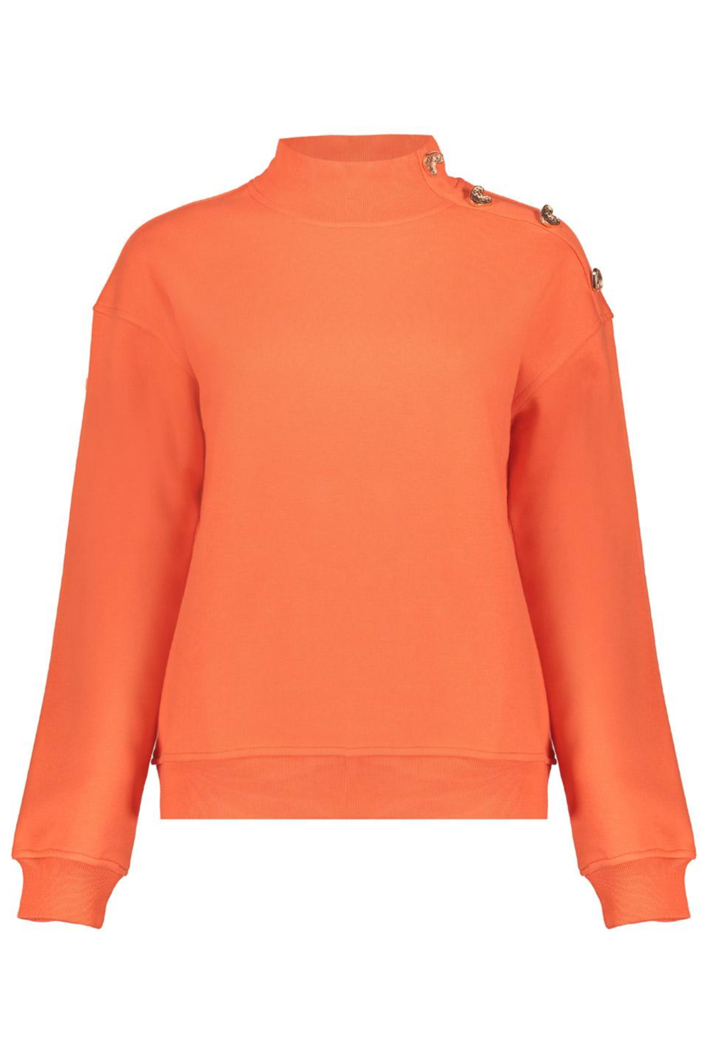 Deze opvallende oranje sweater van Geisha is een must voor de wintertijd. Met een regular pasvorm en gemaakt van een mix van 65% katoen en 35% polyester biedt deze damestrui het comfort dat je zoekt. De sweater heeft een high neck design en is voorzien van elegante gouden knopen op de schouder, wat een subtiele, maar stijlvolle touch geeft. De lange mouwen en normale lengte maken deze sweater een essentiële aanvulling voor je casual garderobe.