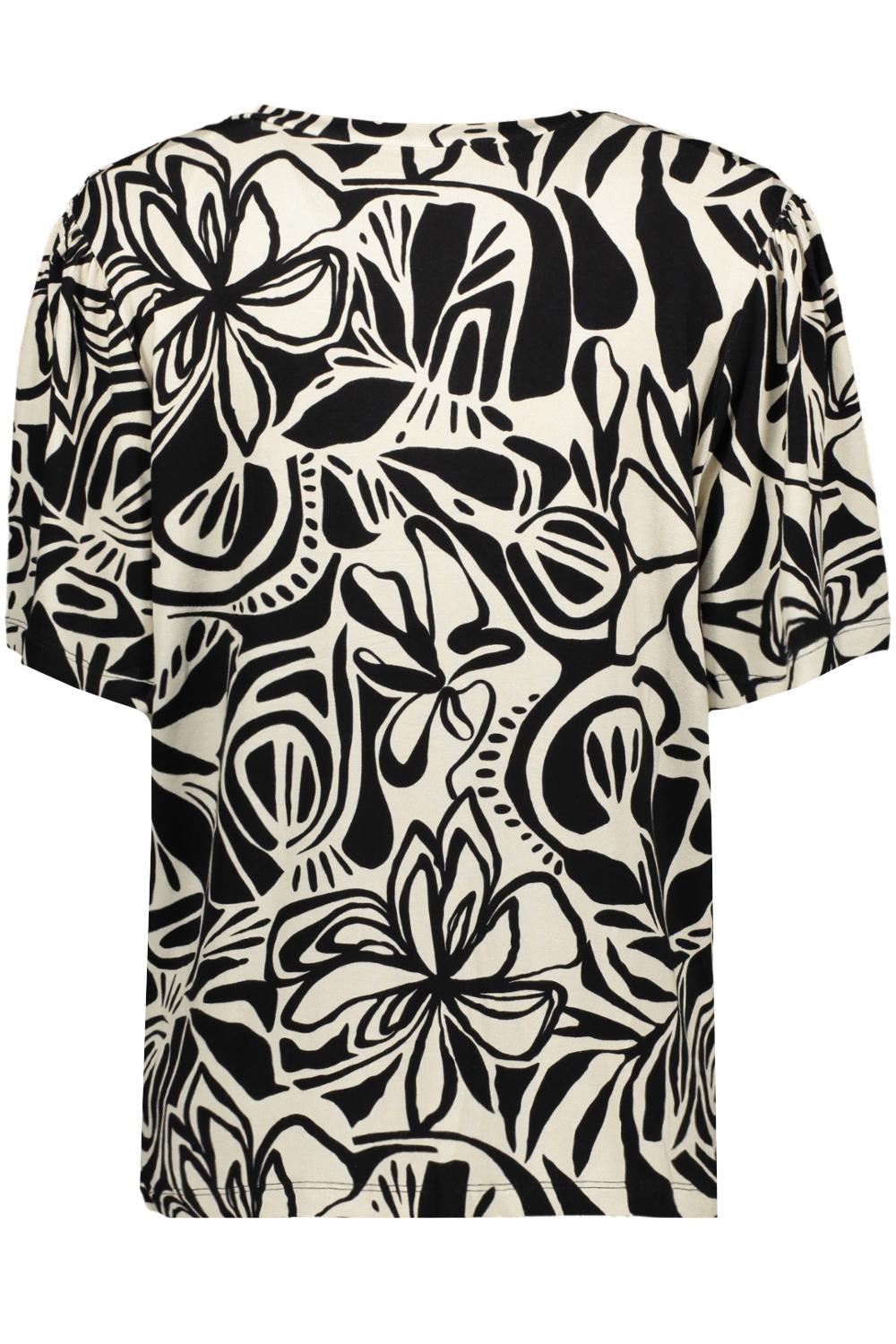 Dit casual T-shirt van Geisha is een speelse aanvulling voor je zomergarderobe. Met een opvallend grafisch patroon in zwart en off-white, straalt het een creatieve flair uit. De regular fit en de comfortabele v-hals maken het een makkelijk te dragen stuk voor allerlei gelegenheden. Gemaakt van een fijne mix van 95% viscose en 5% elastan, biedt het luchtigheid en stretch, ideaal voor de warme dagen. Of je nu naar een lunch met vrienden gaat of een ontspannen weekend voor de boeg hebt, met dit T-shirt ben je altijd goed gekleed. Dankzij het moderne design is dit Geisha T-shirt eenvoudig te combineren met zowel jeans als rokken. De korte mouwen zorgen voor een casual uitstraling, perfect voor een dagje uit in de stad. De normale lengte maakt het geschikt om zowel in als uit je broek of rok te dragen, afhankelijk van je stijlvoorkeur. Dit veelzijdige stuk brengt een vleugje kunstzinnigheid naar je alledaagse looks, zonder in te boeten aan comfort.