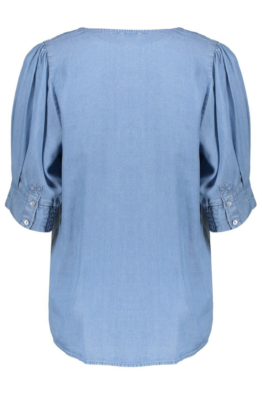 Dit dames T-shirt van Geisha, uitgevoerd in een frisse mid blue denim tint, is een stijlvolle aanvulling op je garderobe. Het T-shirt is gemaakt van 100% Lyocell, wat zorgt voor een soepele en ademende stof die comfortabel aanvoelt. De regular fit en halflange lengte maken het gemakkelijk te dragen voor verschillende lichaamstypen. De elegante V-hals en de subtiele ruches op de mouwen geven dit T-shirt een moderne uitstraling die zowel geschikt is voor casual als iets formelere gelegenheden. De korte mouwen en het luchtige materiaal maken dit Geisha T-shirt ideaal voor het lente seizoen. Combineer het met een lichte jeans voor een relaxte dag in het park of draag het met een nette rok voor een zakelijke lunch. De veelzijdigheid van het ontwerp maakt het een perfecte keuze voor zowel dagelijks gebruik als voor speciale gelegenheden. Met zijn tijdloze stijl en comfortabele pasvorm is dit T-shirt een must-have voor jouw lente-garderobe.