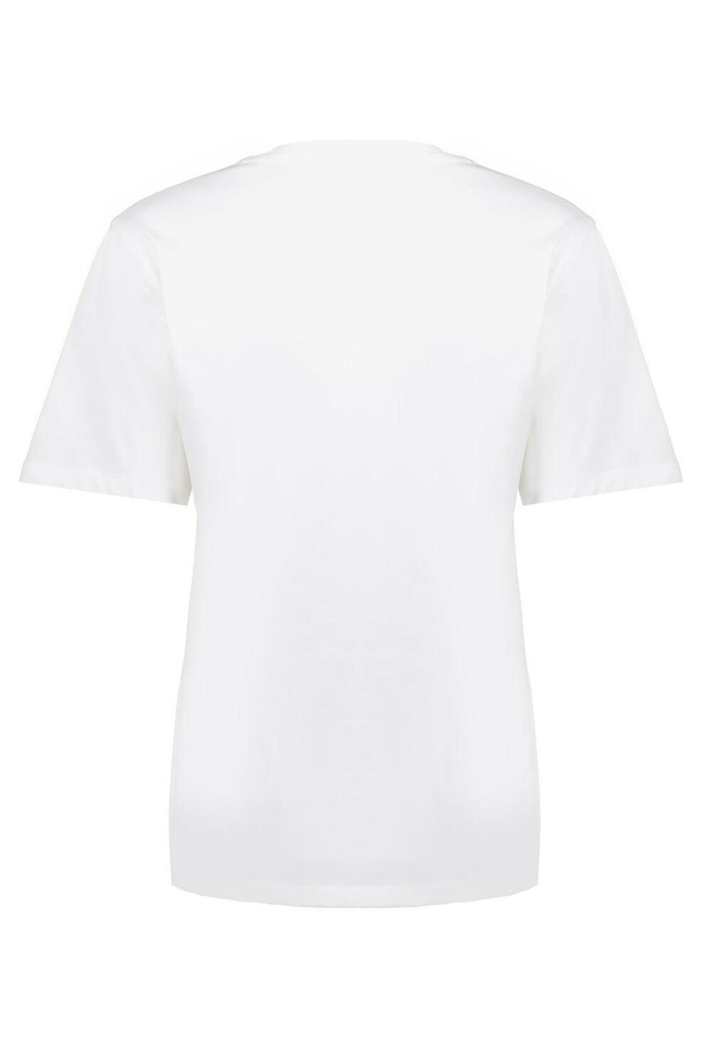 Dit casual dames T-shirt van Geisha is een fijne toevoeging voor je lente-garderobe. Gemaakt van 100% katoen, biedt het T-shirt met zijn zachte stof een aangename, luchtige pasvorm. De regular fit en korte mouwen zorgen voor een ontspannen look, perfect voor dagelijkse activiteiten. De witte basis wordt stijlvol aangevuld door de opvallende groene tekstprint die het woord "Simplicité" benadrukt. Deze subtiele details maken het T-shirt veelzijdig en passend voor zowel een ontspannen dagje thuis als een informele bijeenkomst met vrienden. Met een ronde hals en normale lengte is dit Geisha T-shirt eenvoudig te combineren met verschillende kledingstukken. Draag het met een jeans voor een casual uitstraling of combineer het met een rok voor een speelsere look. Het tijdloze ontwerp en de heldere kleur maken het geschikt voor meerdere seizoenen. Of je nu een wandeling maakt in de natuur of een middagje door de stad slentert, dit T-shirt biedt je comfort en stijl in één.