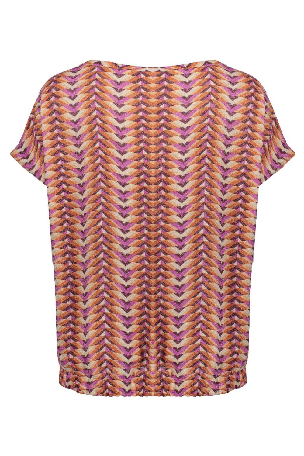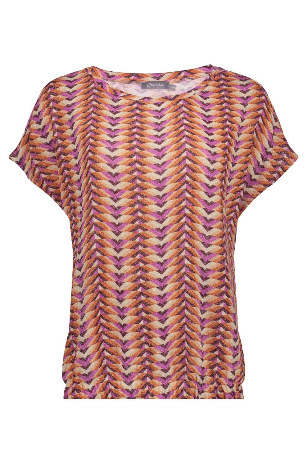 Dit kleurrijke T-shirt van Geisha is een prachtige toevoeging aan je lente garderobe. Het regular fit model is ontworpen met een levendig patroon van glitters in verschillende tinten oranje, roze en paars, waardoor het direct in het oog springt. Met de kap mouwen en een revers kraag biedt dit T-shirt een casual en comfortabele uitstraling die geschikt is voor allerlei dagelijkse activiteiten. Gemaakt van 76% polyester, 20% metaalgaren en 4% elastan, combineert het materiaal soepelheid met een subtiele glans. Het Geisha T-shirt is perfect voor informele gelegenheden, of je nu een middagje de stad in gaat of een ontspannen lunch met vrienden hebt. Dankzij de normale lengte en het luchtige ontwerp is het eenvoudig te combineren met zowel een lichte broek als een nette rok. Dit T-shirt maakt het eenvoudig om er stijlvol en verzorgd uit te zien, terwijl je toch geniet van ultiem comfort. Laat je stijl stralen met dit unieke en vrolijke kledingstuk van Geisha.