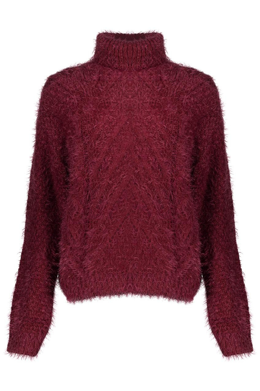 Deze burgundy Geisha trui belichaamt comfort en stijl in een warme winteruitvoering. De trui, met zijn regular fit, biedt een flatterende pasvorm voor elke dame en is ontworpen in een prachtige kabelpatroon dat de textuur benadrukt. Dankzij de colkraag blijf je heerlijk warm, terwijl de lange mouwen extra bescherming bieden tegen de kou. Het fluffy breisel zorgt voor een zachte, cosy feel, ideaal voor de koude winterdagen.