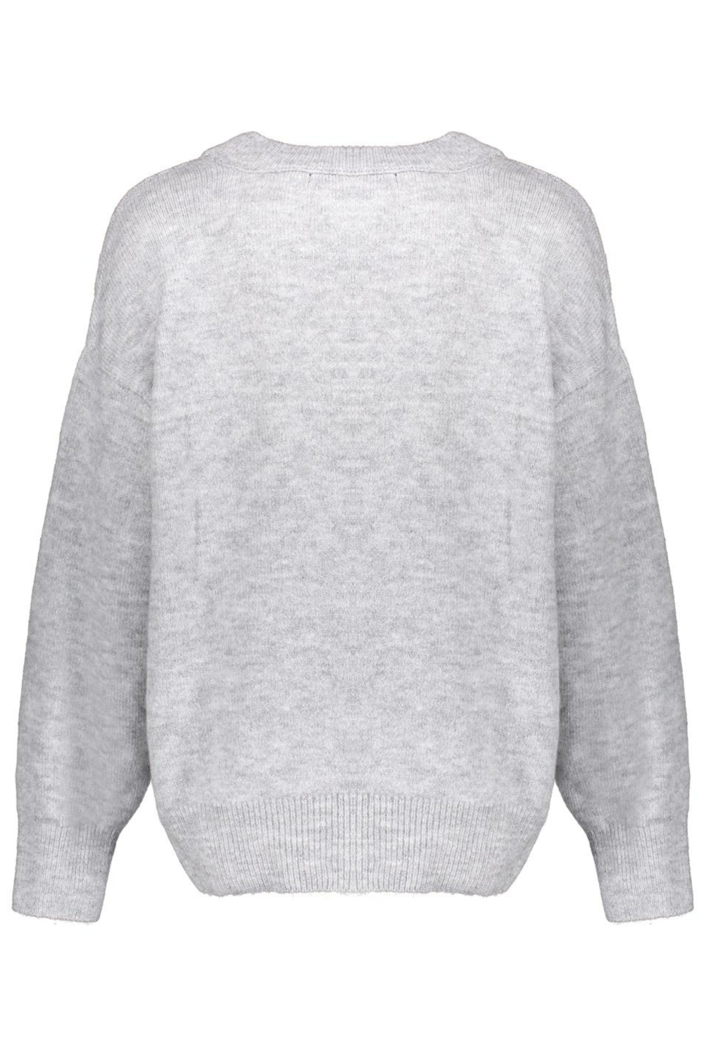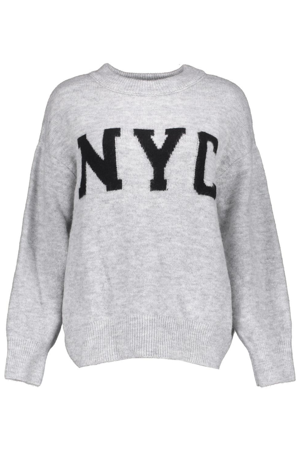Deze stijlvolle Geisha trui is een uitstekende keuze voor de wintermaanden. De oversized pasvorm geeft het een relaxte uitstraling, terwijl de grijze tint en de opvallende zwarte 'NYC' tekst het geheel een trendy en eigentijdse look geven. Gemaakt van een comfortabele mix van 70% acryl, 28% polyester en 2% elastan, biedt deze trui zowel warmte als stretch voor een aangename pasvorm. De ronde hals en lange mouwen maken het tot een veelzijdig kledingstuk dat je met gemak kunt stijlen.