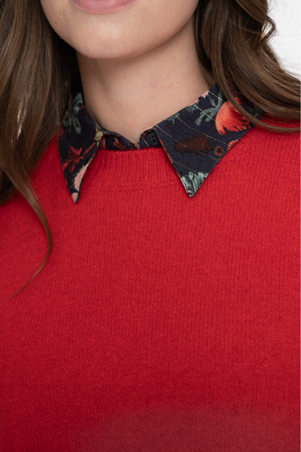 Deze trui van Geisha is ideaal voor zowel casual als meer formele settings. Combineer hem met een spijkerbroek voor een ontspannen dagoutfit of draag hem over een blouse voor een chicere look. De heldere rode kleur voegt een vleugje levendigheid toe aan elke outfit, perfect om kleur toe te voegen aan de winterse dagen. Of je nu naar kantoor gaat of een dagje uit plant, deze trui is een stijlvolle en praktische aanvulling op je garderobe.