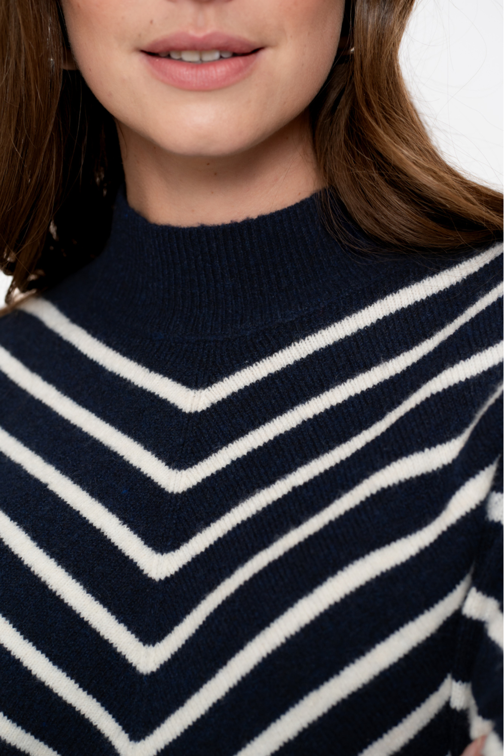 Deze stijlvolle trui van Geisha in navy en offwhite is een veelzijdige aanvulling op je kledingkast. Met zijn opvallende streepmotief en high neck biedt de trui een moderne uitstraling die je warm houdt tijdens de herfst. De regular fit zorgt voor een comfortabele pasvorm, waardoor het perfect is voor zowel een relaxte dag thuis als een doordeweekse kantoordag. Het gebruikt 74% acryl, 22% polyester en 4% elastan, wat zorgt voor een zachte en duurzame stof die lang mooi blijft.