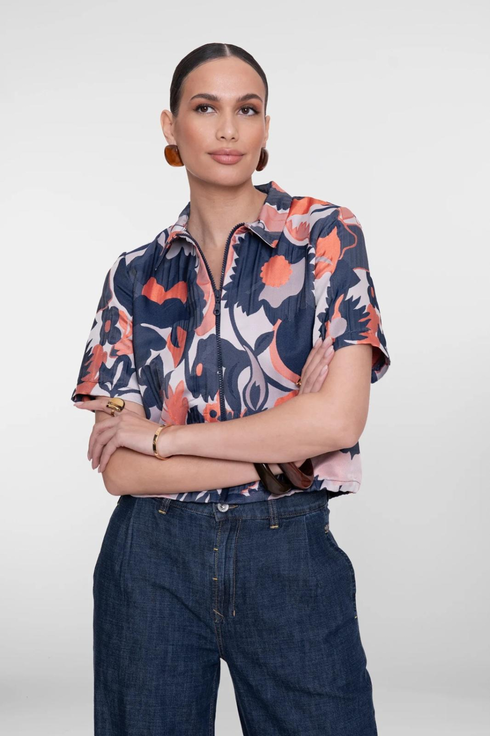 Dit kleurrijke dames vest van Geisha is een opvallend stuk in je lentegarderobe. Met zijn frisse bloemenpatroon in blauwtinten en levendige coral accenten, biedt dit vest een speelse en stijlvolle uitstraling. De korte mouwen en de comfortabele regular fit maken het tot een perfect kledingstuk voor de warmere dagen. Dankzij de praktische ritssluiting en de puntkraag is dit vest gemakkelijk aan te passen aan verschillende looks. Gemaakt van 100% polyester, biedt dit Geisha vest niet alleen een prettige pasvorm maar ook een lichte en ademende ervaring. Het korte design geeft een moderne twist aan een klassieke stijl, ideaal voor dagelijks gebruik of een casual uitstapje. Combineer het met een lichte jeans voor een relaxte dag in het park of draag het over een effen jurk voor een kleurrijke touch. Dit vest is veelzijdig in te zetten en een absolute aanwinst voor je casual outfit collectie.