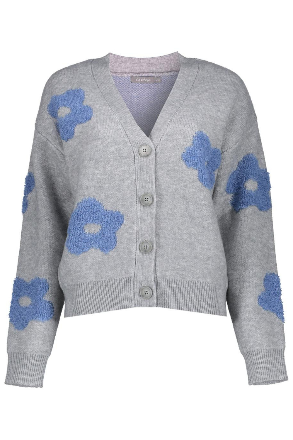 Dit fraaie vest van Geisha is een veelzijdige keuze voor je dagelijkse outfit. Het vest heeft een regular fit en is gemaakt van een comfortabele mix van acryl, polyester en nylon. Met de grijze melange kleur en blauwe gebreide bloemenpatroon, creëert het een speelse, maar toch chique uitstraling. De V-hals en de knoopsluiting maken dit stuk stijlvol en gemakkelijk te combineren met verschillende looks. Of je nu kiest voor een casual of nette outfit, dit vest past er perfect bij. Het Geisha vest is ideaal voor verschillende gelegenheden, of je nu een dagje naar kantoor gaat of een informele bijeenkomst bijwoont. De lange mouwen en normale lengte zorgen voor een prettige draagervaring, wat het geschikt maakt voor dagelijks gebruik. Combineer het met een lichte blouse en jeans voor een moeiteloze casual look of draag het over een jurkje voor een iets gekledere stijl. Dit vest biedt een heerlijke combinatie van stijl, comfort en veelzijdigheid.