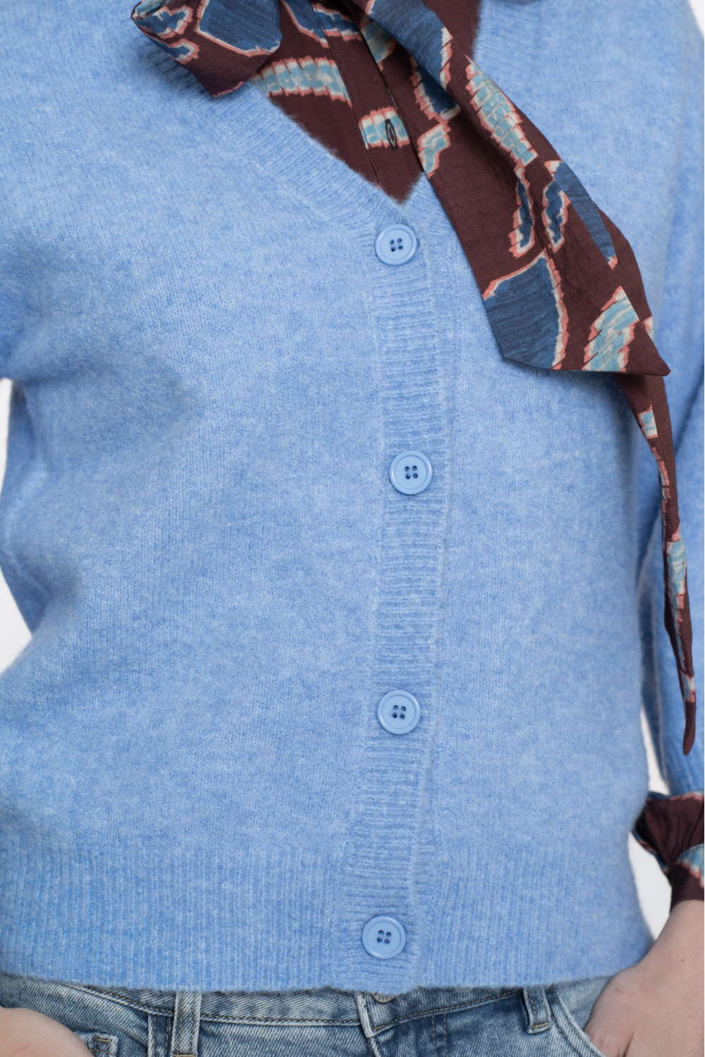 Dit gemêleerde Geisha vest in de kleur blauw voegt stijl en comfort toe aan je dagelijkse outfits. Met een regular pasvorm en een elegante V-hals, biedt dit vest een verfijnde uitstraling zonder in te boeten op comfort. De knoopsluiting aan de voorkant en de 3/4 mouwen maken dit kledingstuk niet alleen praktisch maar ook fashionable. Perfect voor de basisgarderobe, dankzij zijn veelzijdige ontwerp en tijdloze kleur. Het Geisha vest is een uitstekende keuze voor zowel informele als semi-formele gelegenheden. Combineer het met je favoriete jeans voor een relaxte look, of draag het over een blouse voor een meer gepolijste stijl. De normale lengte maakt het geschikt om zowel dichtgeknoopt als losjes te dragen, afhankelijk van de setting. Of je nu op kantoor bent of een middagje stad plant, dit vest biedt de juiste balans tussen stijl en gemak.