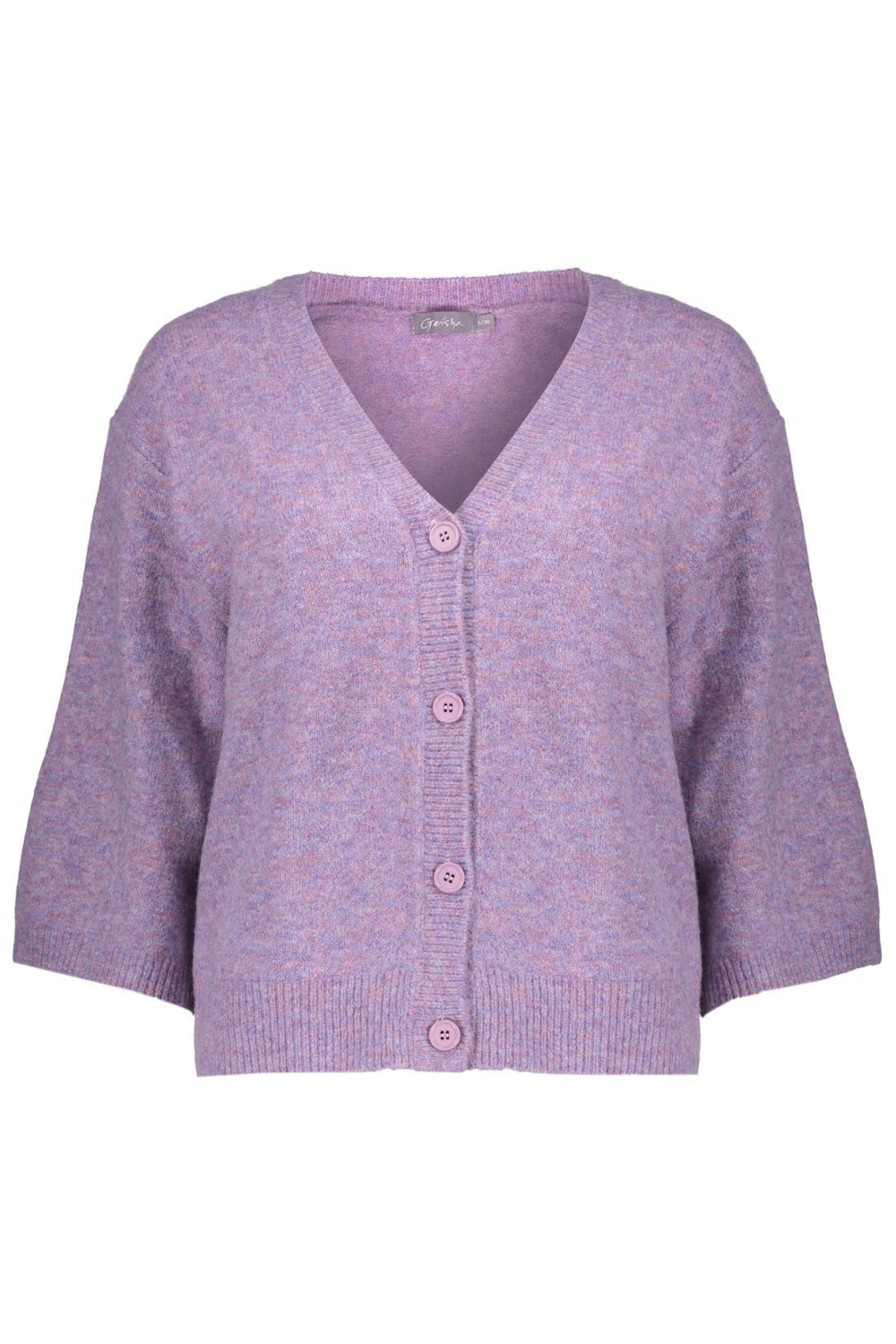 Dit gemêleerde damesvest van Geisha is een prachtige toevoeging aan je herfstgarderobe. Uitgevoerd in een zachte lila tint, zorgt het knitwear ontwerp voor een comfort dat zowel stijlvol als veelzijdig is. Met een regular fit en een klassieke V-hals creëer je moeiteloos een elegante look. De knoopsluiting en de lange mouwen maken het vest perfect voor laagjes op koelere dagen. De subtiele kleur en de normale lengte maken dit vest ideaal voor verschillende gelegenheden. Of je nu een dagje naar kantoor gaat of een casual afspraak hebt met vrienden, dit vest past gemakkelijk bij jeans of een rok. De zachte textuur en het gemêleerde patroon voegen een extra dimensie toe aan je outfit, waardoor je altijd goed voor de dag komt. Het vest van Geisha biedt een perfect samenspel van comfort en stijl, zonder al te veel moeite.
