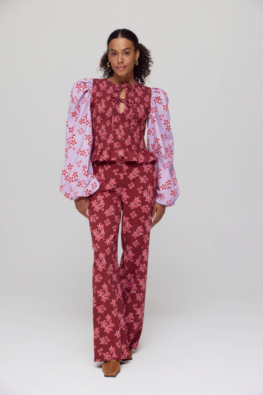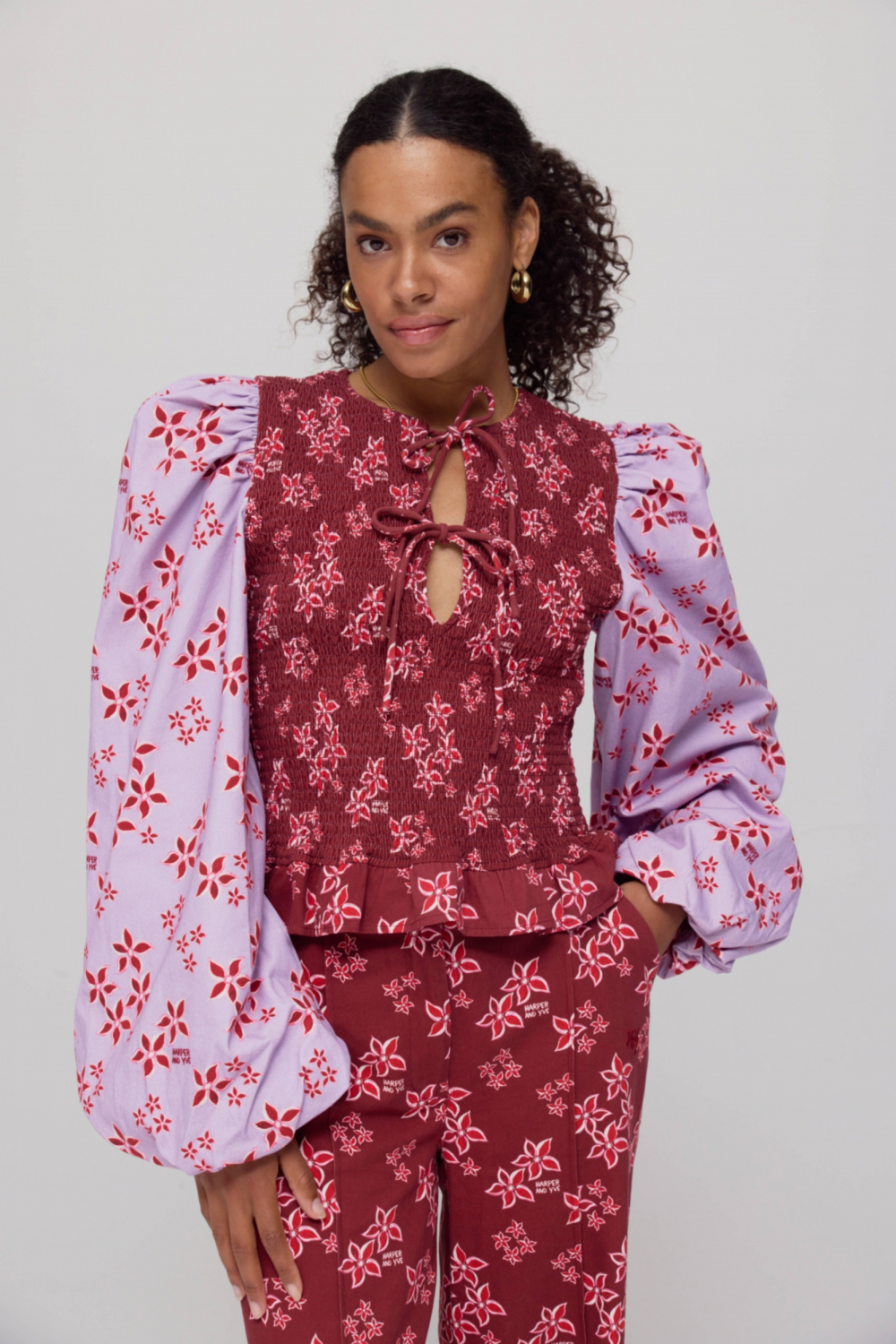 Deze opvallende Harper & Yve blouse, beschikbaar in de unieke kleurcombinatie Pink Star - Wine Berry, geeft je herfstgarderobe een speelse twist. De blouse is gemaakt van 100% katoen en heeft een regular fit, waardoor hij comfortabel en stijlvol is om te dragen. De ronde hals met strikkoordsluiting voegt een charmant detail toe, terwijl de lange, volumineuze mouwen met een bloemmotief in het oog springen. De combinatie van verschillende bloempatronen op de lijf en mouwen zorgt voor een levendige uitstraling die perfect is voor casual gelegenheden. Of je nu naar een informele brunch gaat of een middagje door de stad wandelt, deze korte Harper & Yve blouse is een veelzijdige keuze. Draag hem met je favoriete jeans of een elegante rok voor een moeiteloze look. De rijke kleuren en florale prints maken het gemakkelijk om deze blouse te combineren met diverse stijlen, terwijl de katoenen voering extra comfort biedt. De blouse is meer dan alleen een kledingstuk; het is een statement piece dat je gemakkelijk kunt integreren in je dagelijkse outfits.