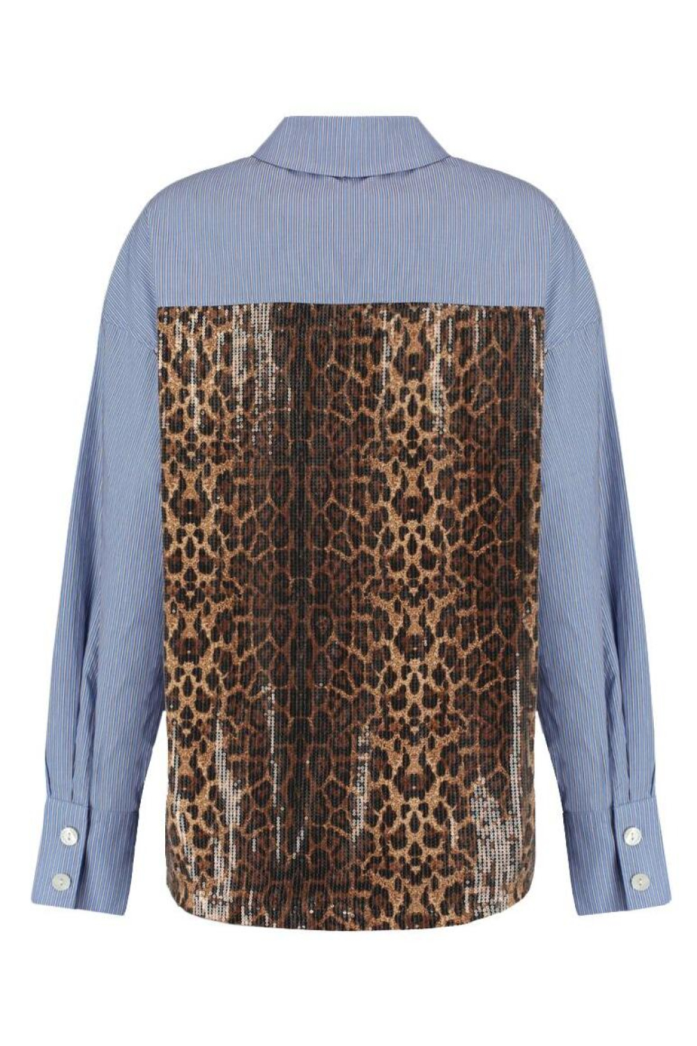 Deze opvallende blouse van Harper & Yve is een aangename toevoeging aan je wintergarderobe. Gemaakt van 100% katoen, biedt deze blouse je een comfortabel draagcomfort met een zachte touch en een ontspannen regular fit. Het design combineert een klassieke lichtblauwe streep met een speelse, opvallende paillettenprint in luipaardmotief op de rug. De blouse heeft een elegante puntkraag en een nette knoopsluiting aan de voorkant, waardoor hij ideaal is voor zowel casual als meer formele gelegenheden. De mix van het ingetogen streeppatroon met de trendy luipaardprint zorgt ervoor dat deze Harper & Yve blouse een veelzijdige keuze is voor uiteenlopende gelegenheden. Draag hem met een klassieke jeans voor een casual look, of kies voor een chique pantalon om je outfit een verfijnde touch te geven. Dankzij de lange mouwen en het halflange model ben je verzekerd van zowel comfort als stijl tijdens koudere dagen. Deze blouse is perfect voor een dag op kantoor of een avondje uit met vrienden.