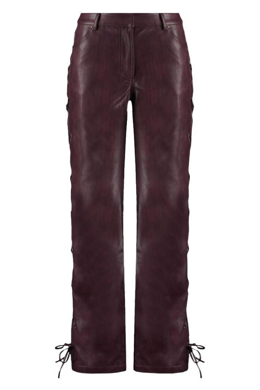 Deze modieuze broek van Harper & Yve, met een opvallende imitatieleer afwerking, voegt een unieke flair toe aan je wintergarderobe. De diepe paarse tint, gecombineerd met smaakvolle details zoals de vetersluiting langs de zijkanten, maakt dit kledingstuk een echte blikvanger. De broek heeft een high waist en een wide leg pasvorm, waardoor het zowel stijlvol als comfortabel draagt. Met een klassieke knoop- en ritssluiting en het praktische 5-pocket ontwerp, biedt het niet alleen stijl maar ook functionaliteit. De broek is ideaal voor dames die graag een statement maken zonder in te boeten op comfort. Deze Harper & Yve broek past perfect bij zowel casual als meer geklede outfits. Draag hem met een elegante top en hakken voor een avondje uit, of combineer met een oversized trui voor een ontspannen weekendlook. Ontdek de veelzijdigheid van dit stijlvolle stuk en laat het jouw winterse outfit compleet maken met een frisse en moderne uitstraling.