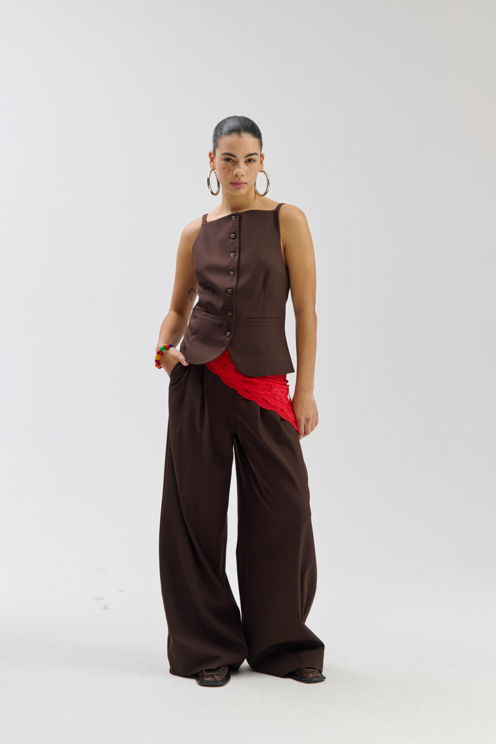Dit veelzijdige gilet van Harper & Yve is een stijlvolle toevoeging aan je lente garderobe. Met een slim fit pasvorm en een kenmerkende vierkante hals, biedt dit mouwloze ontwerp een moderne uitstraling die je zowel in informele als opvallend modieuze settings kunt dragen. De elegante bruine kleur en de verfijnde knoopsluiting geven het een chique touch, terwijl de hoogwaardige samenstelling van 96% polyester en 4% elastaan zorgt voor een comfortabele en duurzame stof. Het gilet kan moeiteloos worden gecombineerd met verschillende outfits voor zowel casual als meer formele aangelegenheden. Draag het met een wijde broek of jeans voor een relaxte uitstraling, of kies een nette rok voor een wat meer geklede look. De voering is van polyester, wat bijdraagt aan het draagcomfort, ideaal voor een dag op kantoor of een gezellig dagje uit. Geniet van de veelzijdigheid en het eigentijdse design dat je garderobe een frisse impuls geeft.