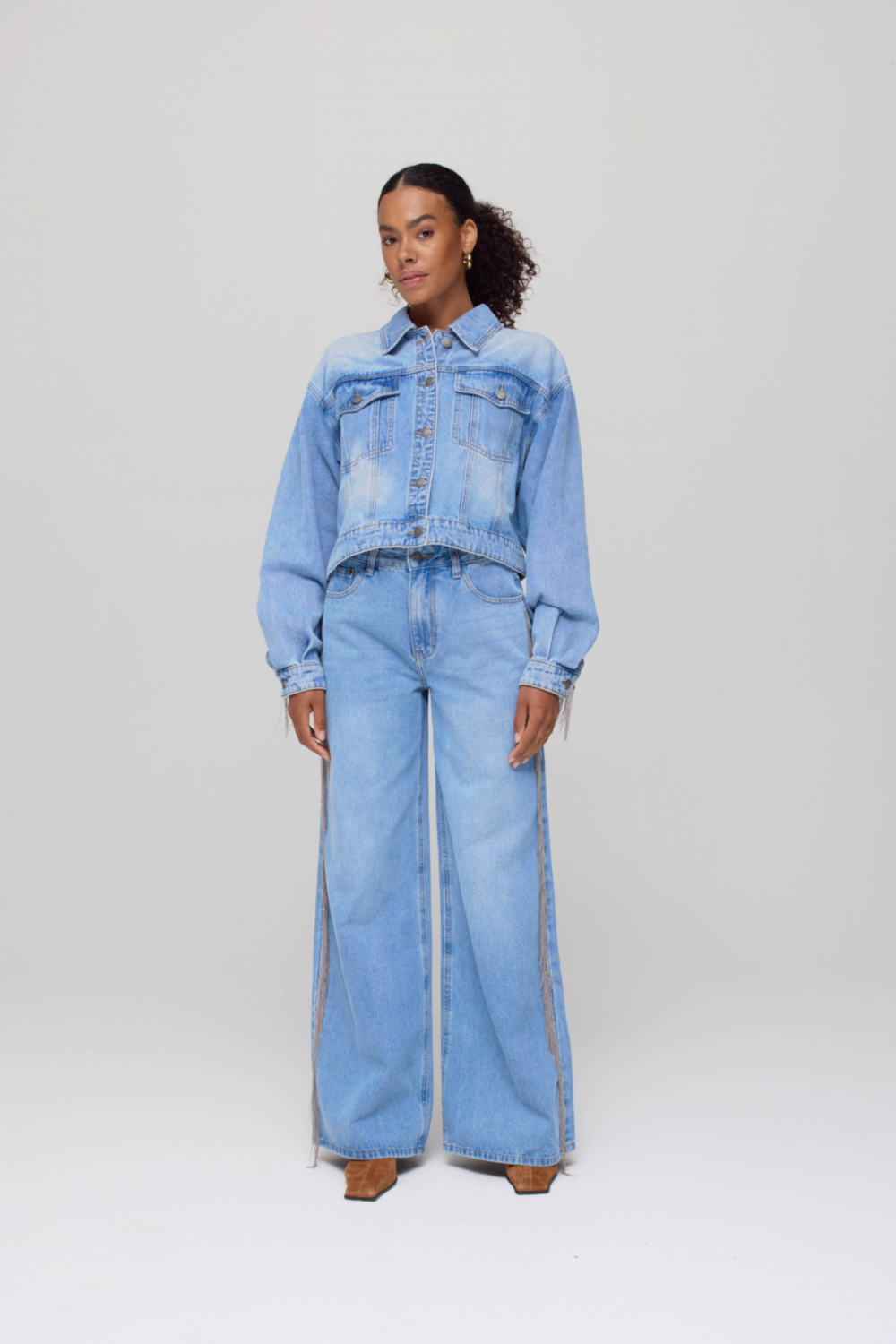 Met deze trendy wide leg jeans van Harper & Yve voeg je een uniek item toe aan je kledingcollectie. De lichte blauwe denim heeft een speelse fringe afwerking aan de zijkanten, wat een dynamisch accent geeft aan het ontwerp. De high waist pasvorm zorgt ervoor dat de jeans comfortabel zit en je figuur mooi benadrukt. Gemaakt van 85% katoen en 15% polyester, biedt deze jeans zowel comfort als duurzaamheid. De knoop- en ritssluiting, samen met het klassieke 5-pocket design, voegen functionaliteit toe aan de modieuze uitstraling. Deze Harper & Yve jeans is perfect voor een herfstlook en kan makkelijk gecombineerd worden met een losse blouse of een stoere jas. Of je nu een dagje de stad ingaat of een casual bijeenkomst hebt, deze jeans is een veelzijdige keuze die past bij verschillende gelegenheden. Het normale lengteontwerp maakt het gemakkelijk te dragen met laarsjes of sneakers, waardoor je altijd een verzorgde look hebt. Voeg deze modieuze jeans gemakkelijk toe aan je dagelijkse outfits voor een stijlvol statement.