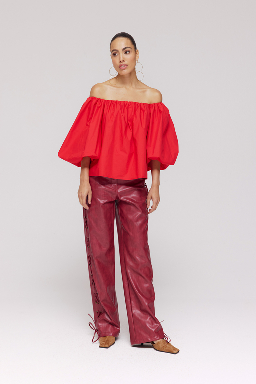 Dit opvallende rode T-shirt van Harper & Yve is een stijlvolle keuze voor je garderobe. Het T-shirt heeft een off-shoulder halslijn en een luchtig ontwerp, perfect passend bij de partystijl die het merk uitstraalt. Gemaakt van 100% katoen, biedt het een comfortabel gevoel zonder in te boeten aan uitstraling. De lange mouwen zijn subtiel geplooid, wat een speelse en elegante touch geeft aan dit kledingstuk. De regular fit en normale lengte maken dit T-shirt gemakkelijk te combineren met verschillende stijlen, ideaal voor winterse uitgaansavonden of feestelijke gelegenheden. Draag het in combinatie met een strakke broek of een zwierige rok om je look compleet te maken. Of je nu gaat voor een casual chic uitstraling of een meer geraffineerde look, dit Harper & Yve T-shirt is veelzijdig en trendy. Voeg een paar opvallende oorbellen toe om je outfit extra flair te geven.