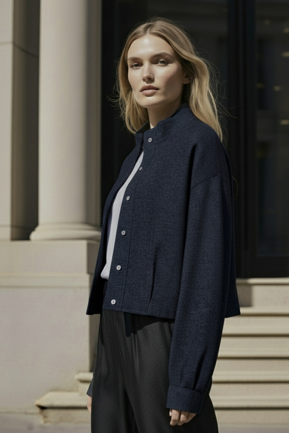 Deze stijlvolle donkerblauwe damesjas van Hype Drop is een veelzijdige toevoeging aan je wintergarderobe. De regular fit biedt een comfortabele pasvorm, terwijl het hoogwaardige, duurzame denim gemaakt van 100% katoen zorgt voor een zacht gevoel. Met de subtiele blinde knoopsluiting en de modieuze hoge kraag straalt de jas een moderne eenvoud uit. Ideaal om te dragen tijdens frisse winterdagen, wanneer je stijlvol voor de dag wilt komen. De korte lengte van de jas maakt het makkelijk om te combineren met zowel casual als chiquere outfits. Draag het over een lichte trui met een mooie broek voor een trendy stadslook, of combineer het met een rok voor wat extra flair. Dankzij de lange mouwen blijf je lekker warm zonder in te boeten op mode. Of je nu een dagje gaat winkelen, een lunchdate hebt of gaat werken, deze jas biedt een perfecte balans tussen comfort en stijl. Meer informatie: De totale lengte is 46 cm bij maat S.