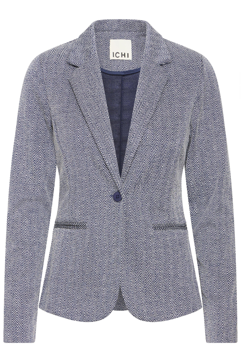 Deze stijlvolle blazer van Ichi wordt gekenmerkt door een opvallend zigzagpatroon dat je look direct een unieke uitstraling geeft. Met een samenstelling van 73% polyester, 25% viscose en 2% elastan, biedt deze blazer de perfecte balans tussen comfort en stijl. De regular fit zorgt voor een ontspannen pasvorm, terwijl de reverskraag bijdraagt aan een klassieke uitstraling. Ideaal voor de herfst, combineert deze blazer met z'n lange mouwen moeiteloos met verschillende outfits, of je nu naar je werk gaat of een casual weekend hebt gepland.